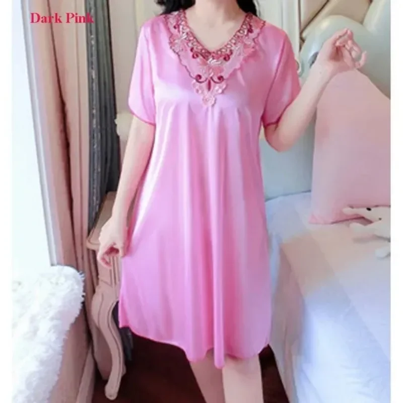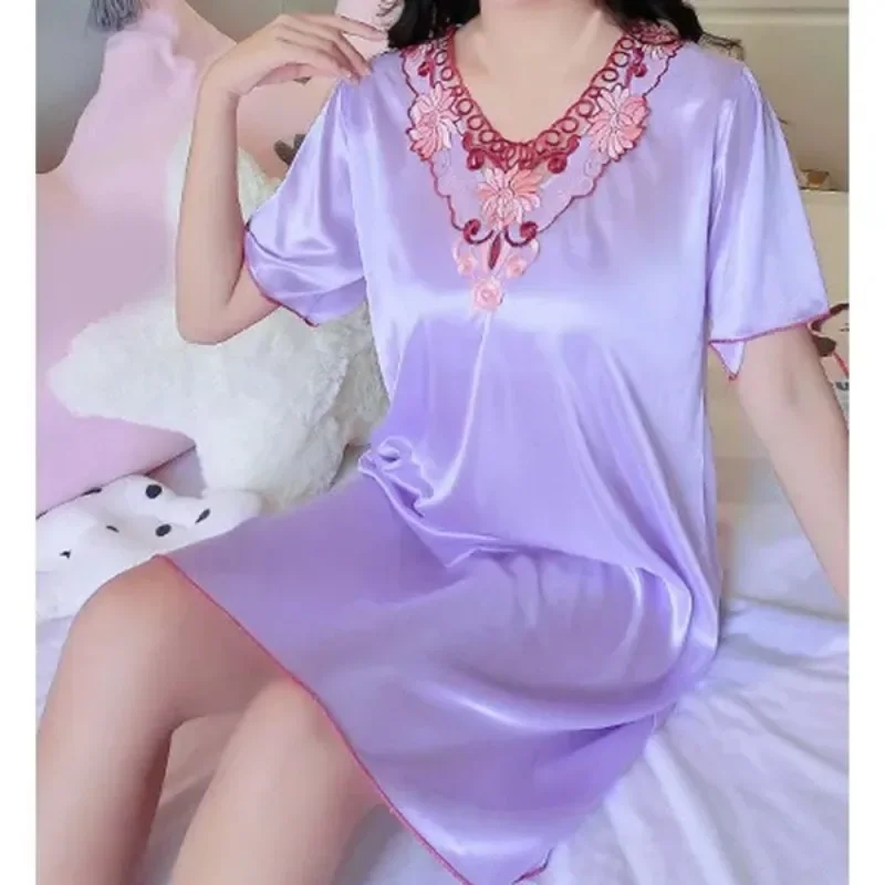 1 Pc Women Lace Stitching Loose Nightdress Summer Fashion Elegant Short Sleeve Pajamas Nightdress