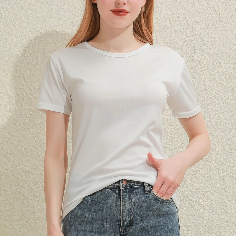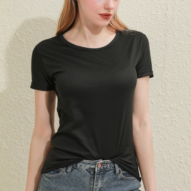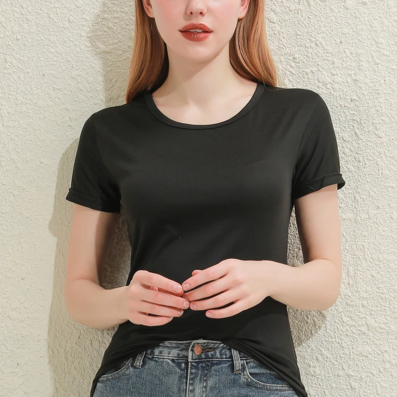 2024 Short T-Shirts Summer Women's Short Sleeve Round Neck Casual Blouse Shirts Solid Color Tops Black / White
