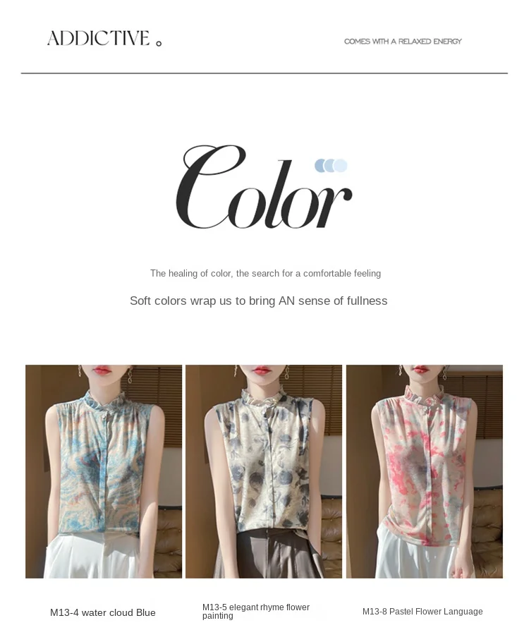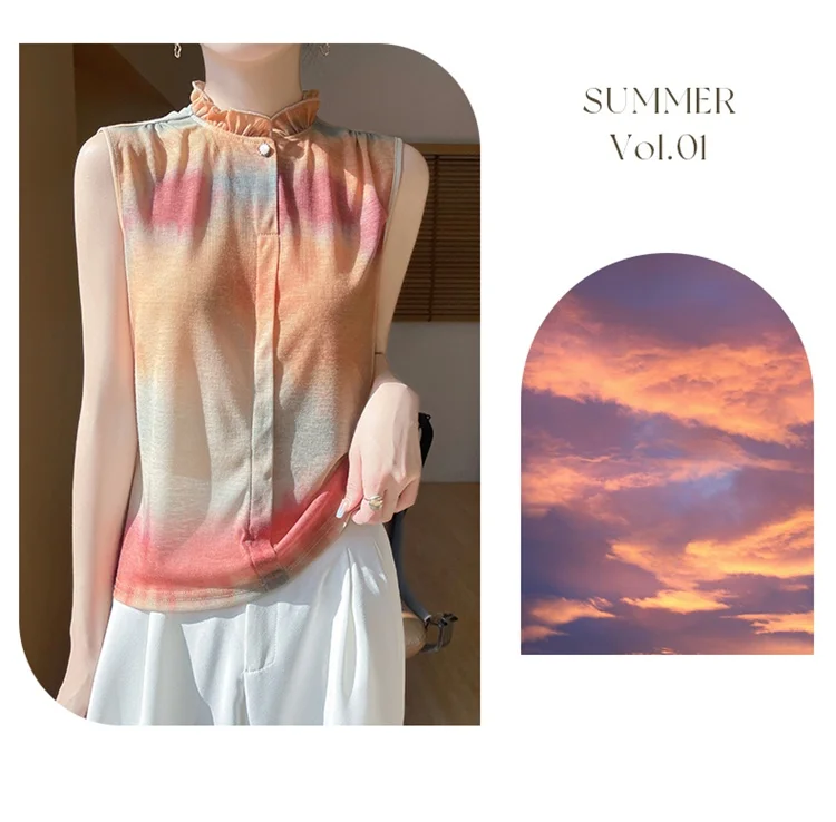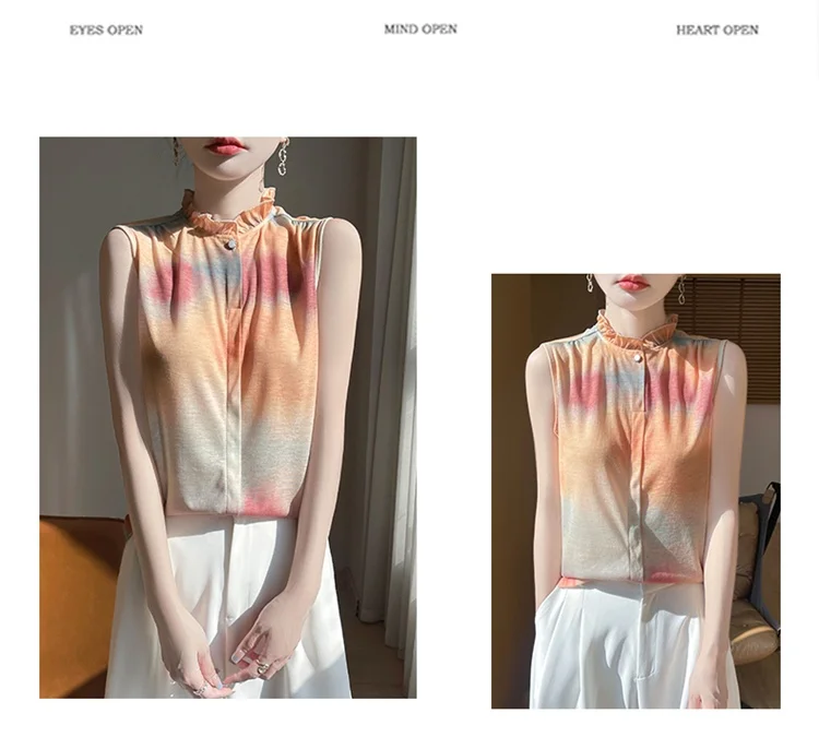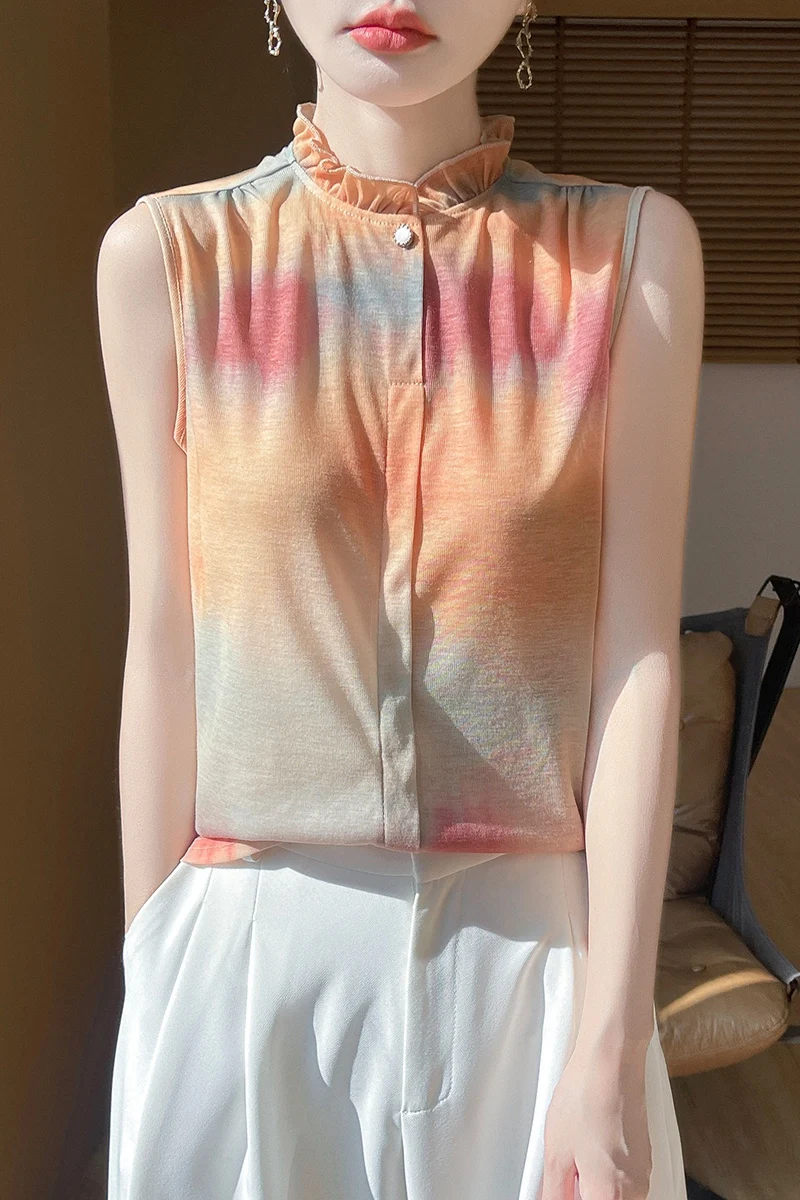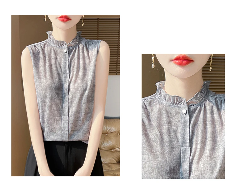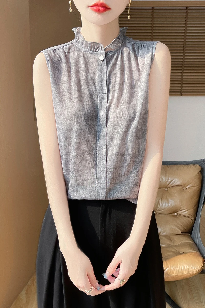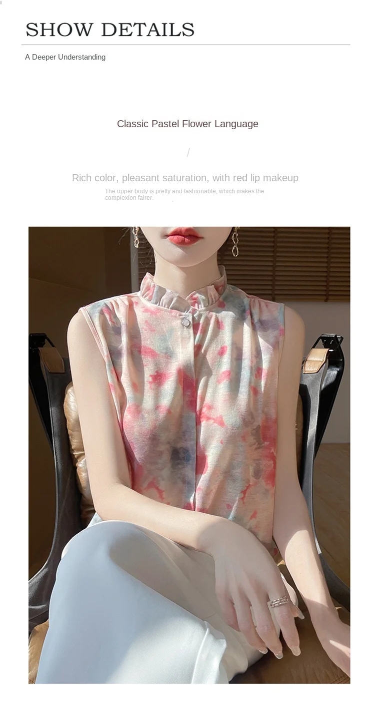 2025 New Chinese Sleeveless Shirt Lace Collar Knit Base Shirt Ink Painting National Style Fashion Western Style Blouse RW M13