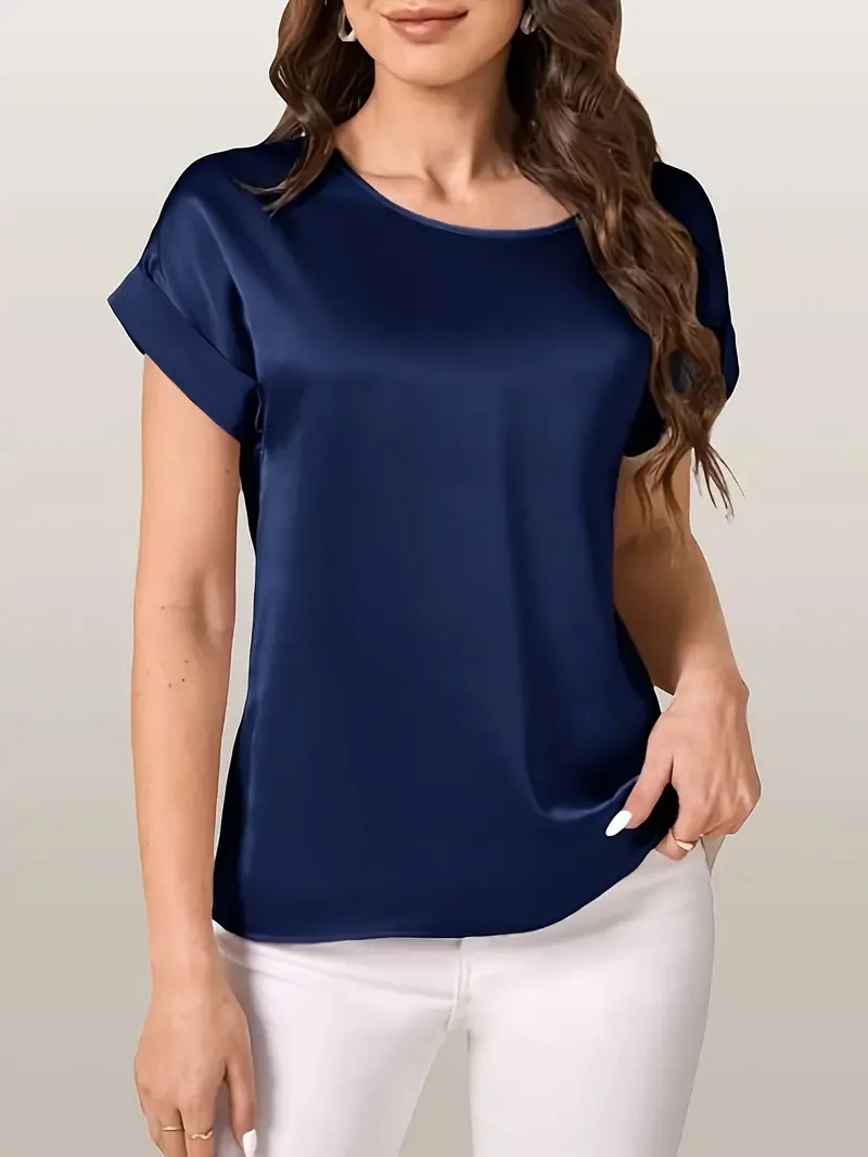 2025 Women's Clothing Summer New Simple Style Round Neck Solid Color Light Sensation Short Sleeve Loose T-shirt