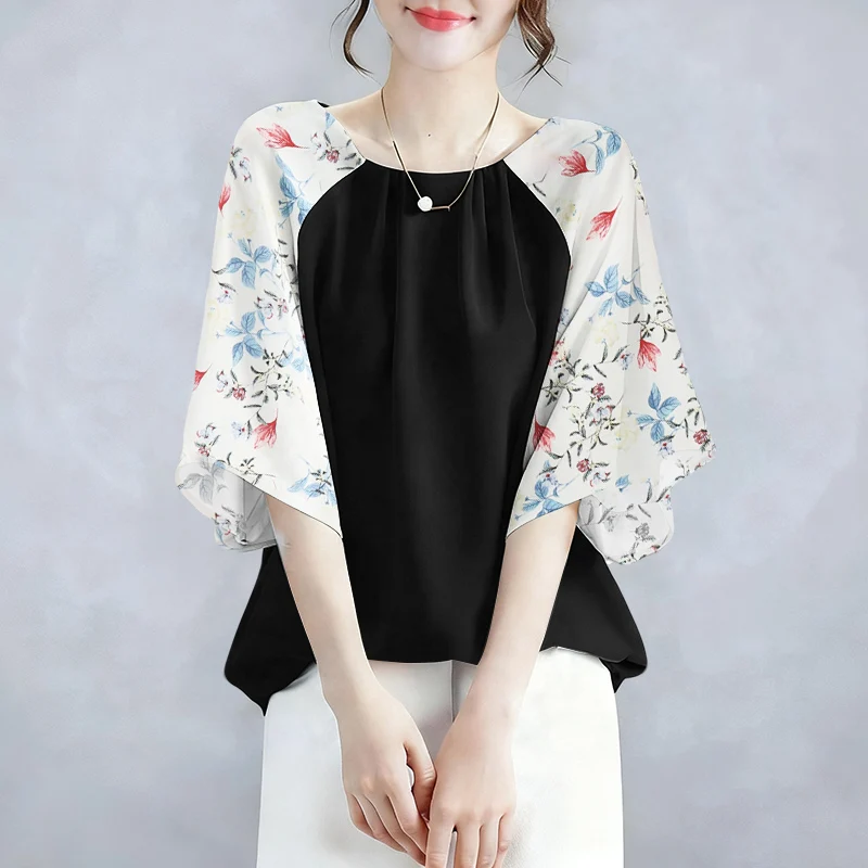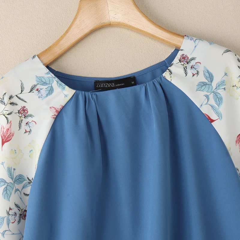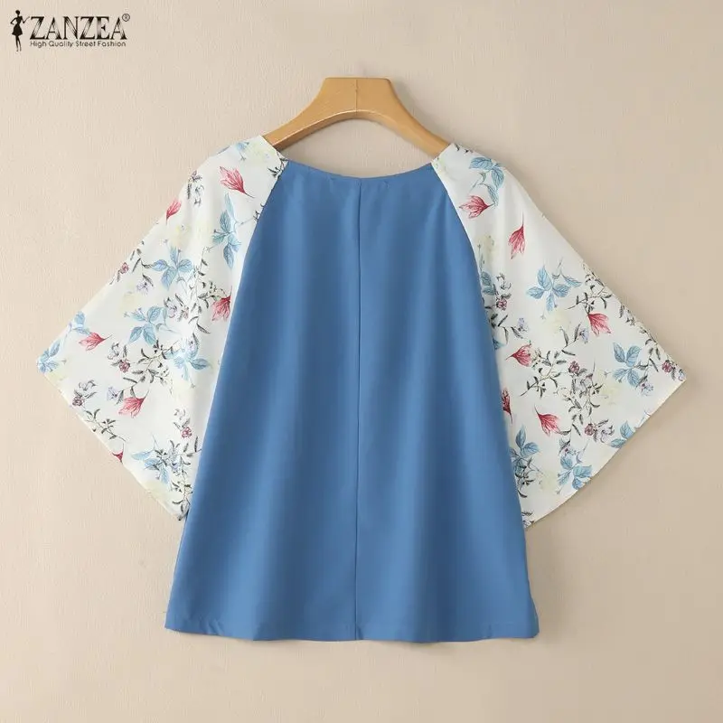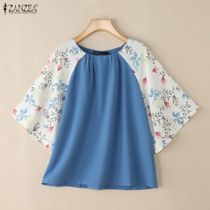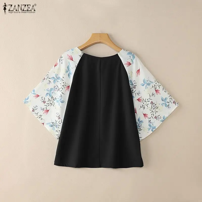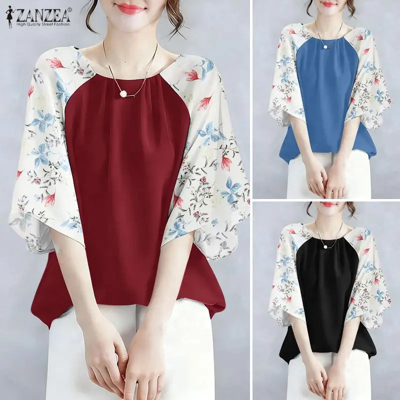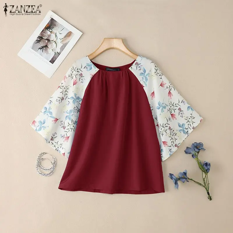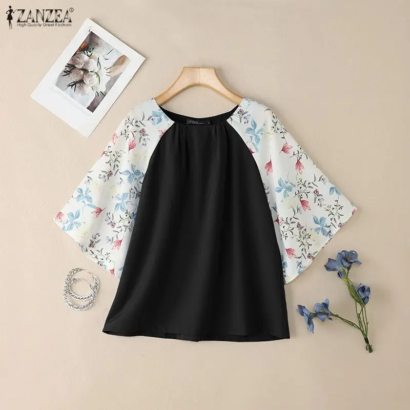 2025 ZANZEA Autumn Printed Blouses Stylish Women Tops Elegant Office Shirt Casual O Neck 3/4 Sleeve Blusas Summer Work Tunic