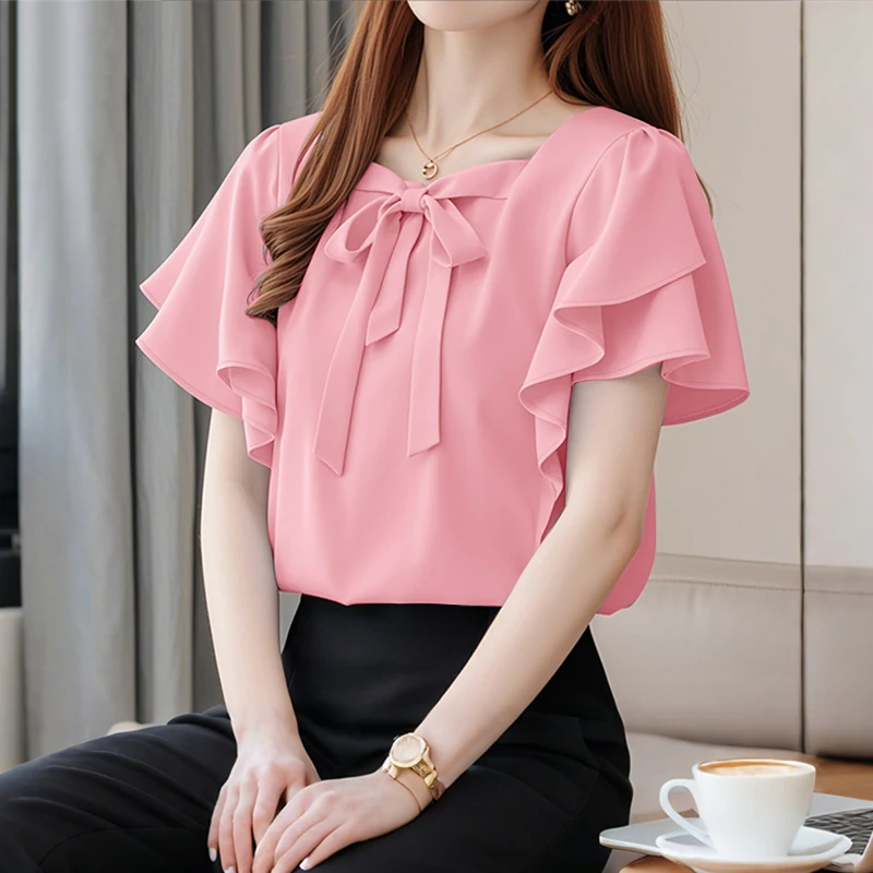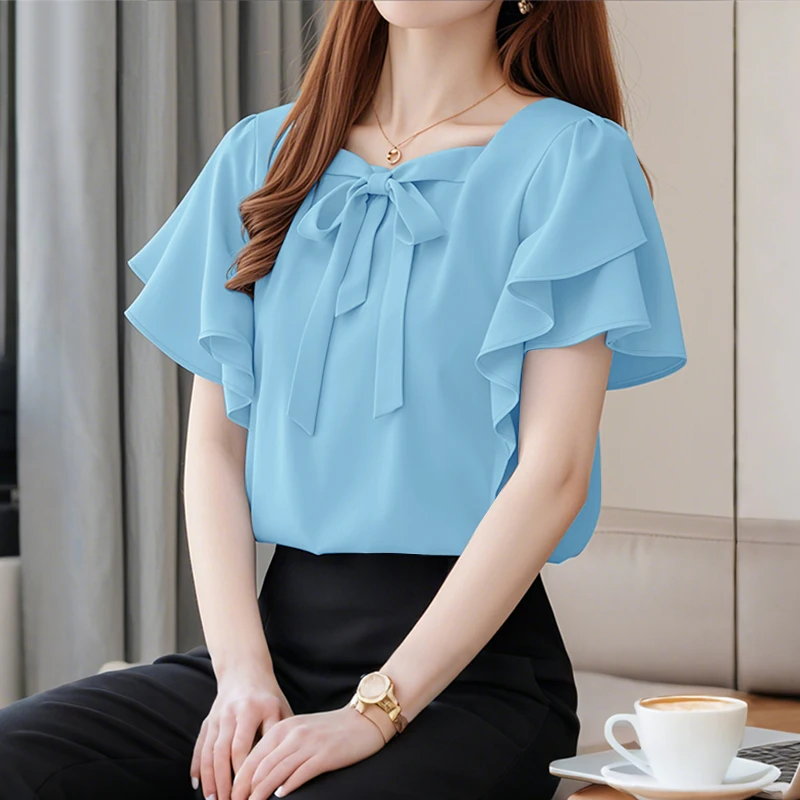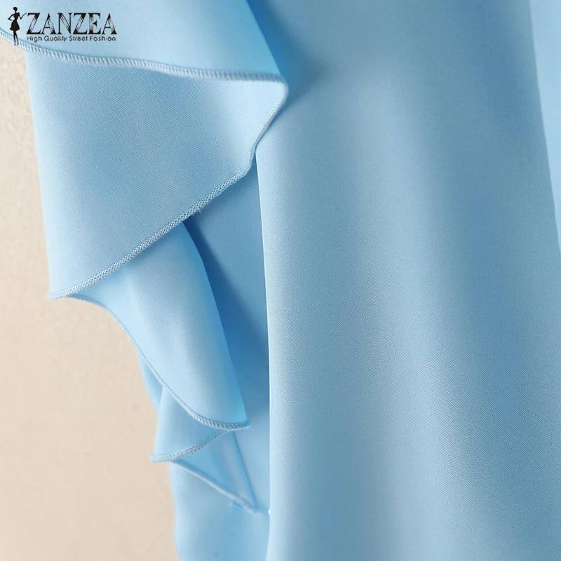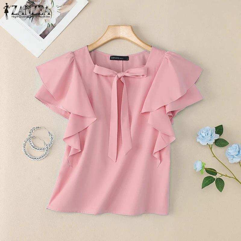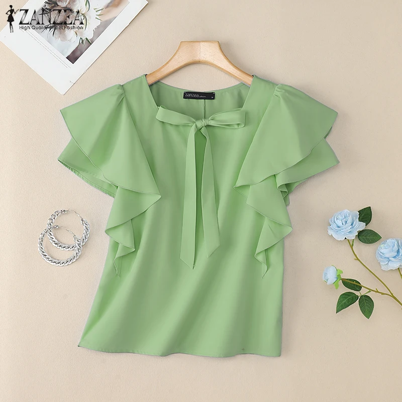 2025 ZANZEA Women Square Neck OL Work Blouse Summer Elegant Office Shirts Stylish Short Ruffled Sleeve Tunic Tops Blusas Femme