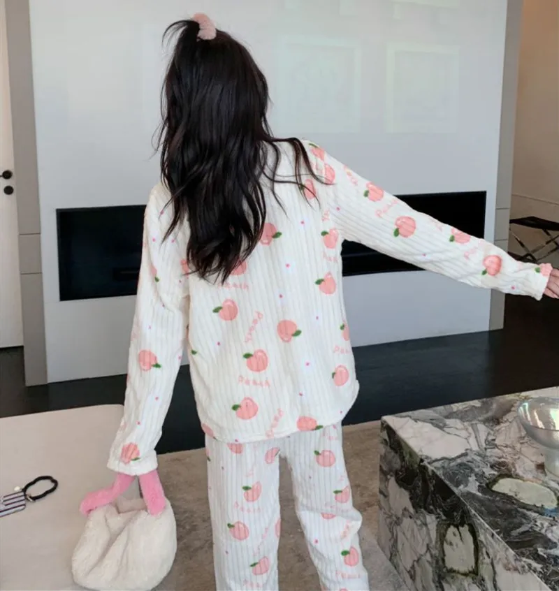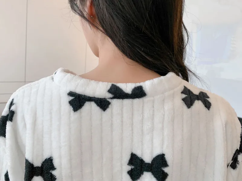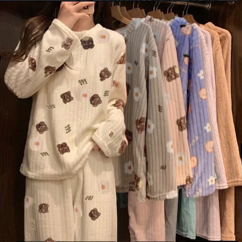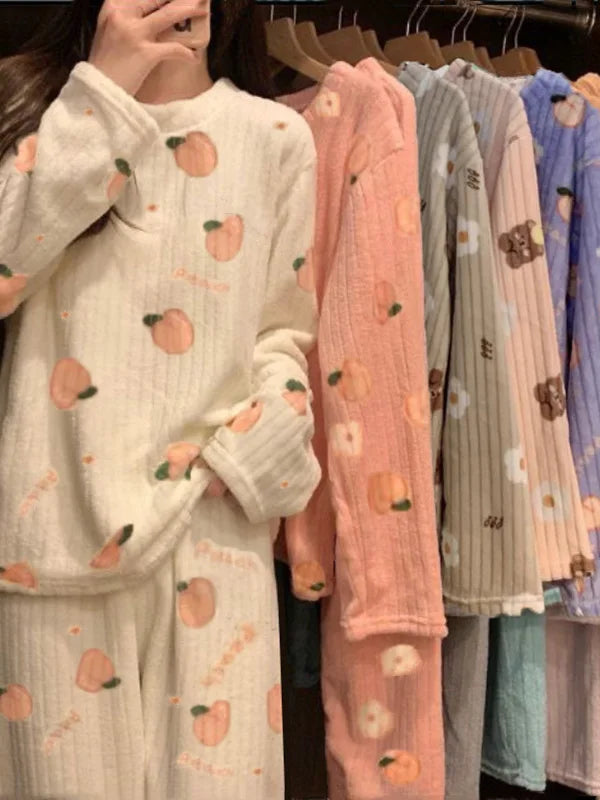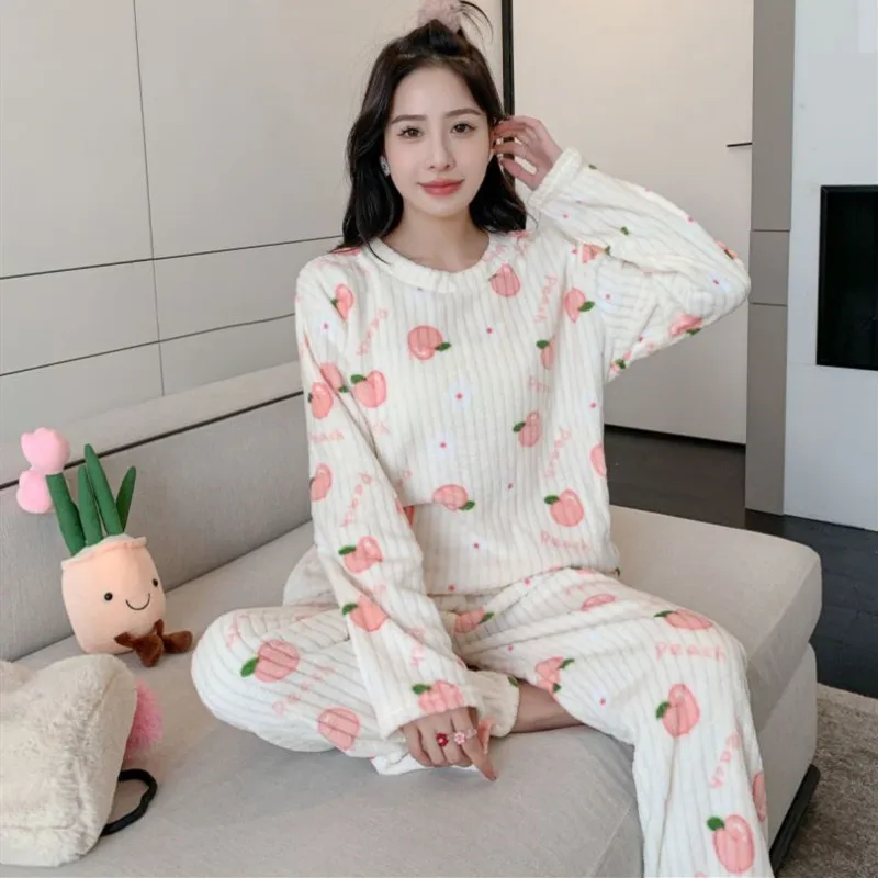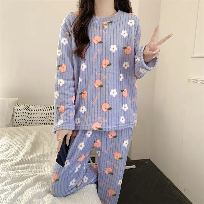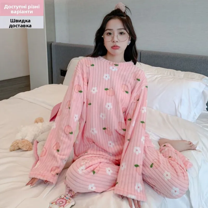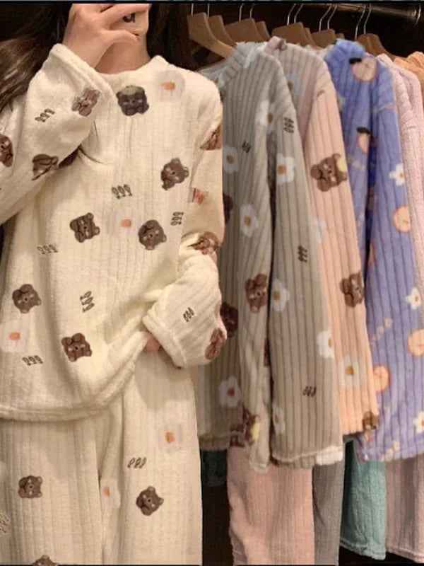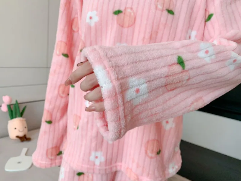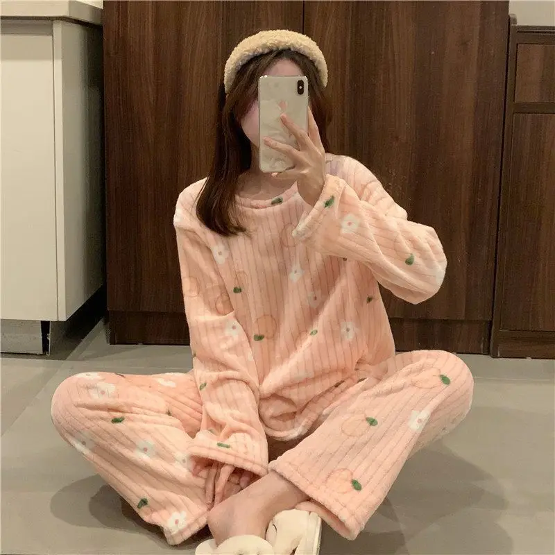 Adorable Sweet Warm Coral Fce Women's Home Clothes Set Autumn Winter Lazy Person's Spwear Long Sve round Ne Two-Pi...