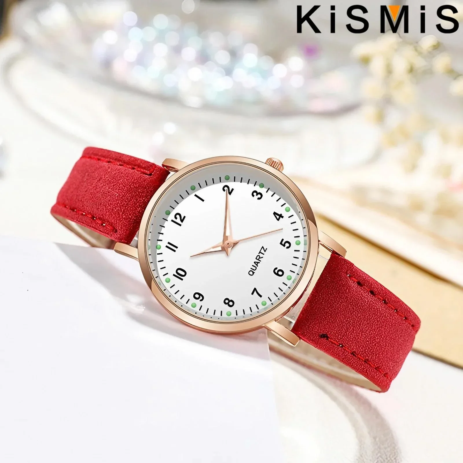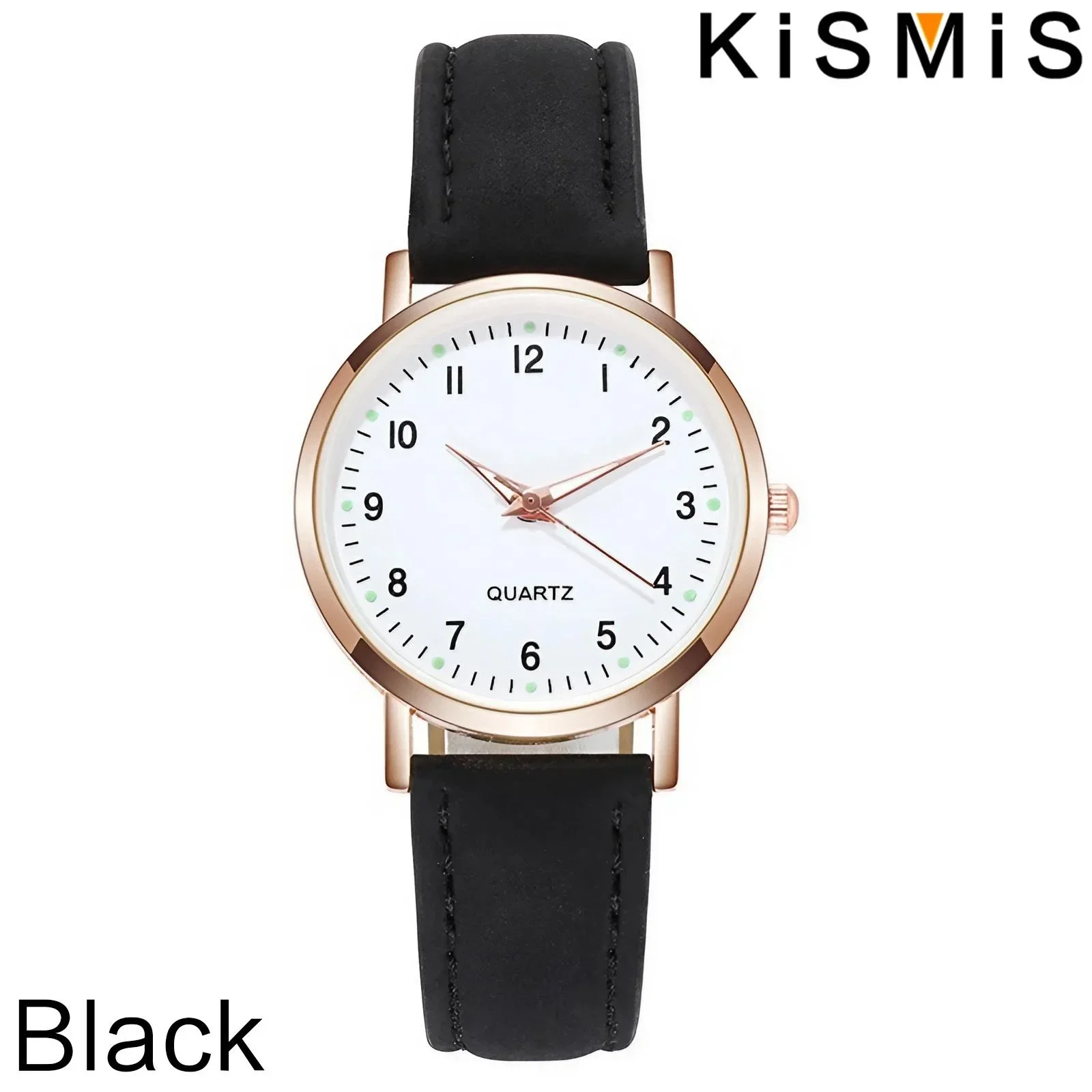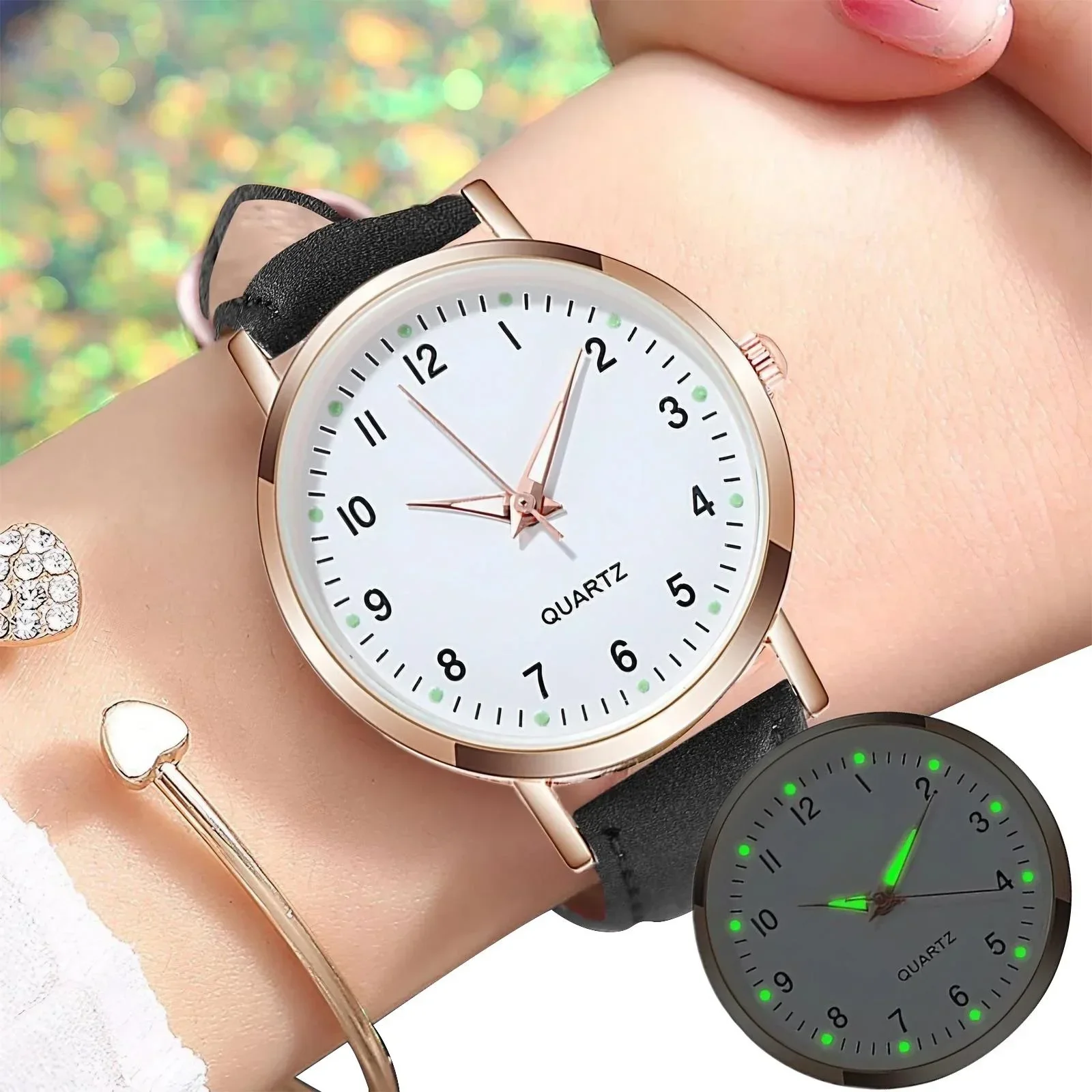Casual Round Quartz Watch Luminous Analog Wristwatch PU Leather Strap for Women Girls Ideal Gift