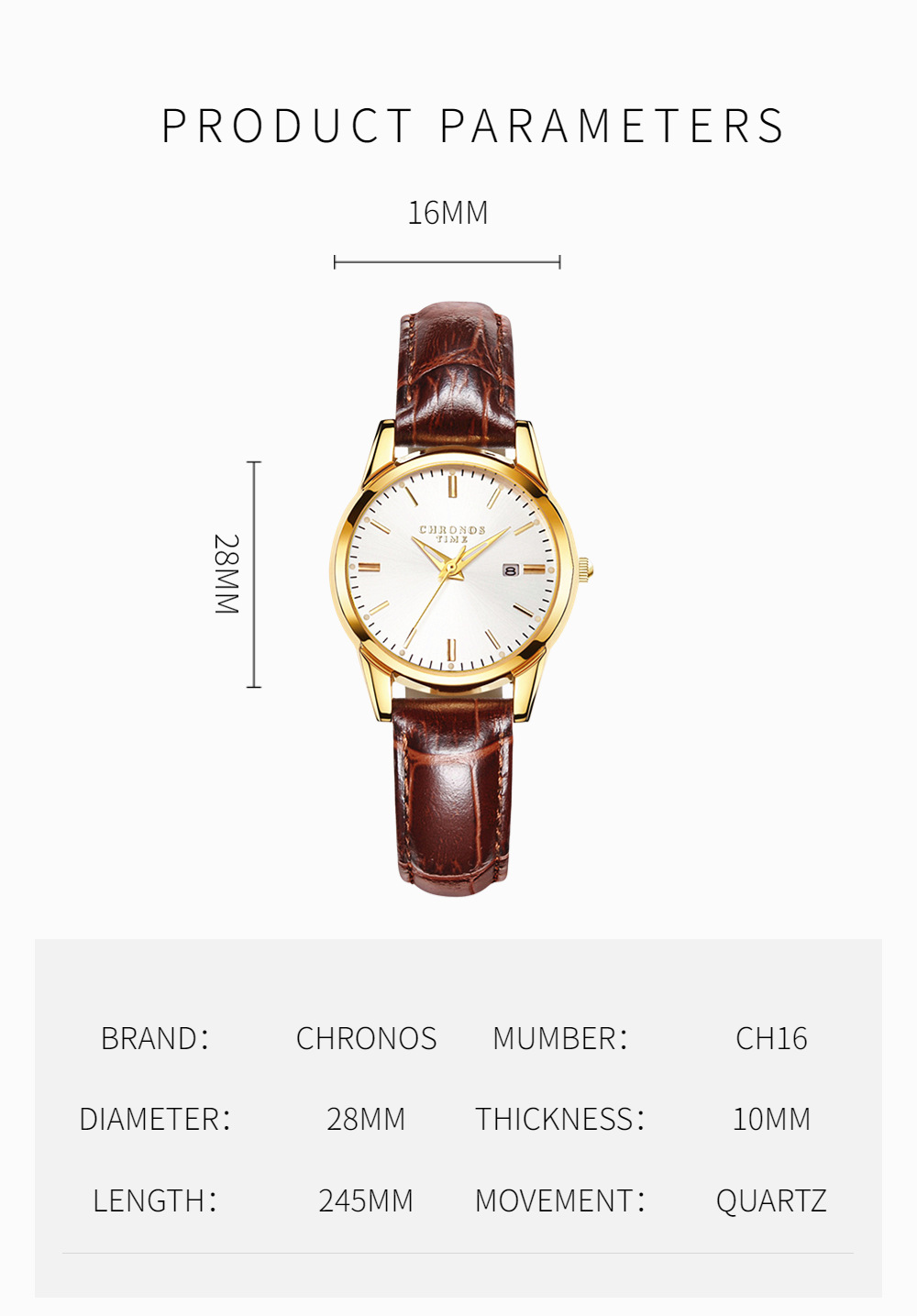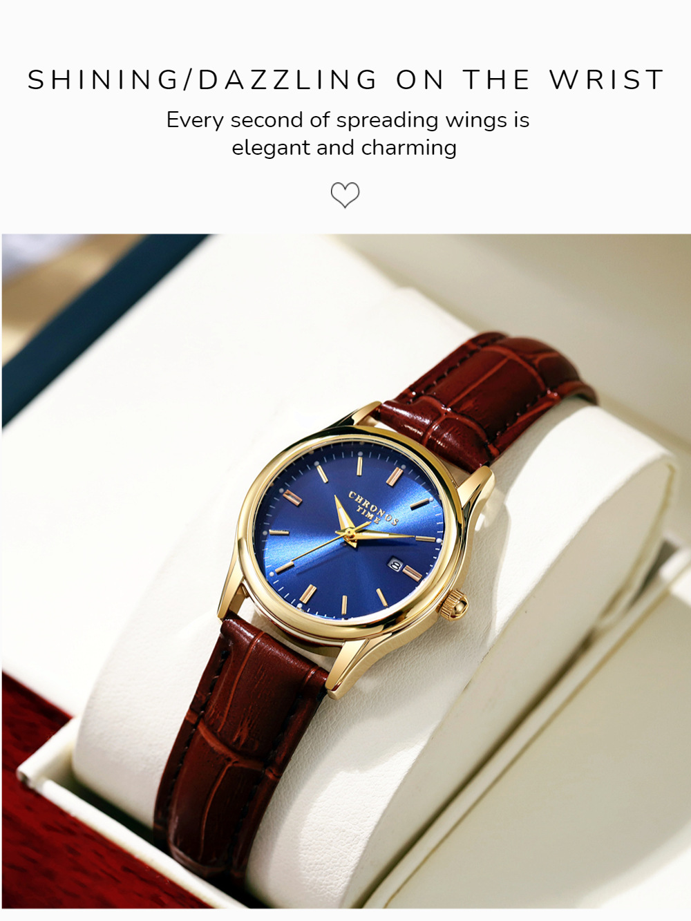 CHRONOS Luxury Leather Watch for Woman Waterproof Stainless Steel Ladies Quartz Watch Dress Elegant Women Watches Fashion reloj