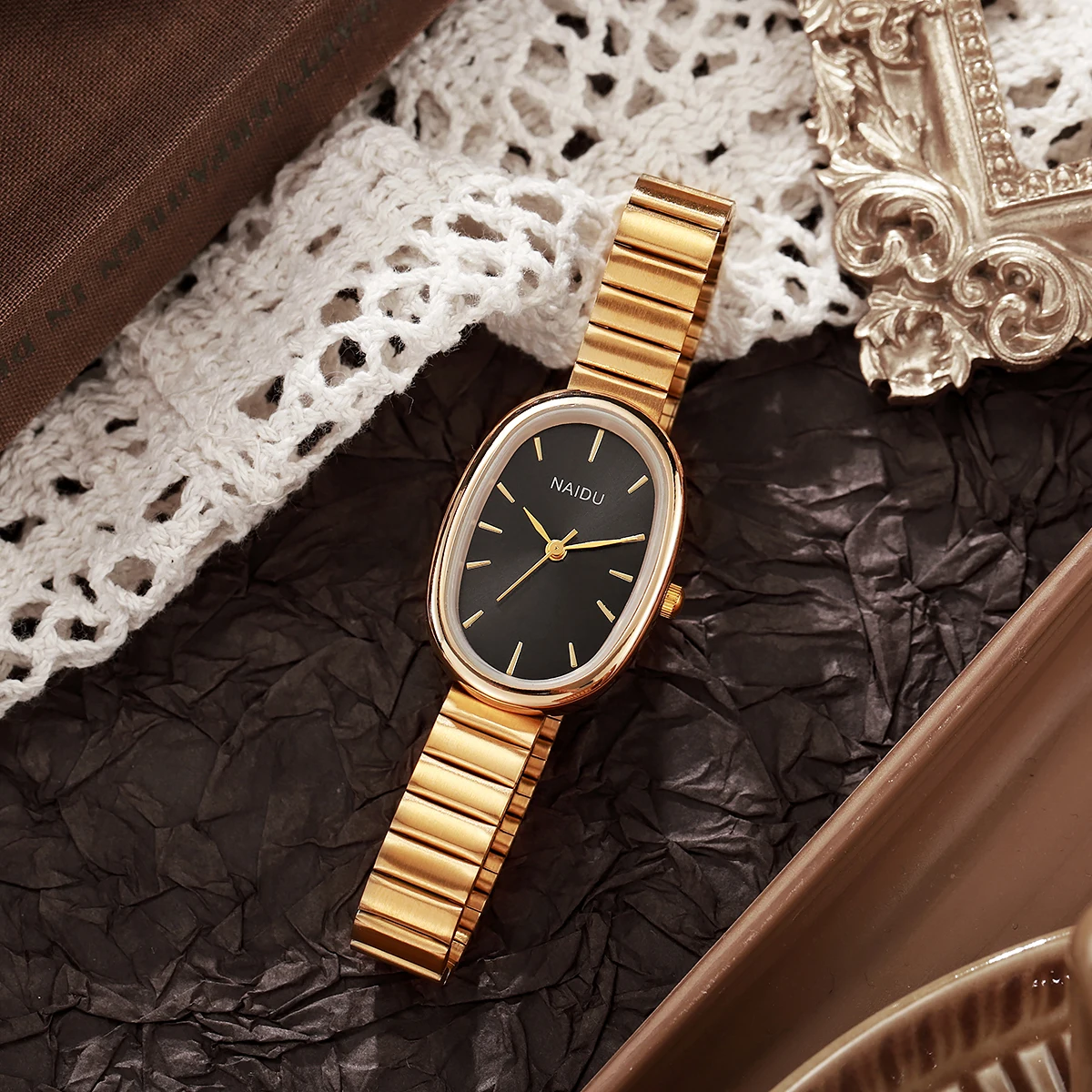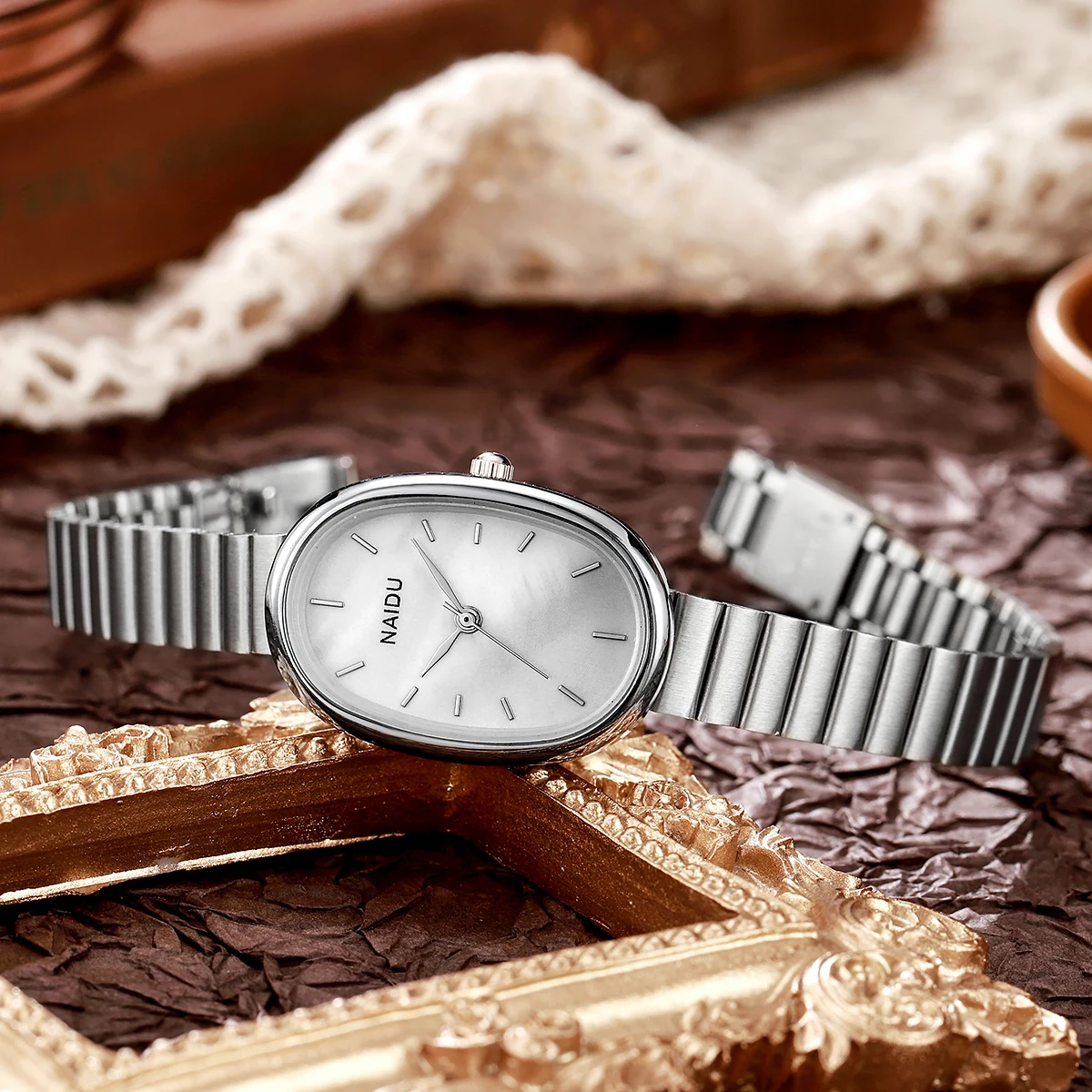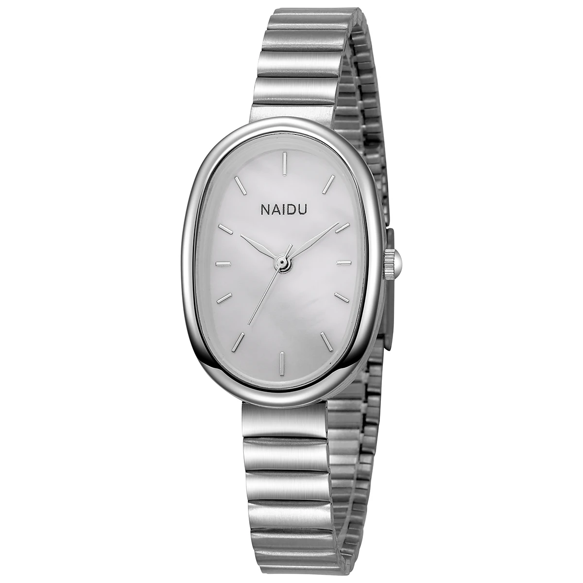 Ladies' exquisite high-value bar scale oval dial bamboo style steel strip quartz watch.