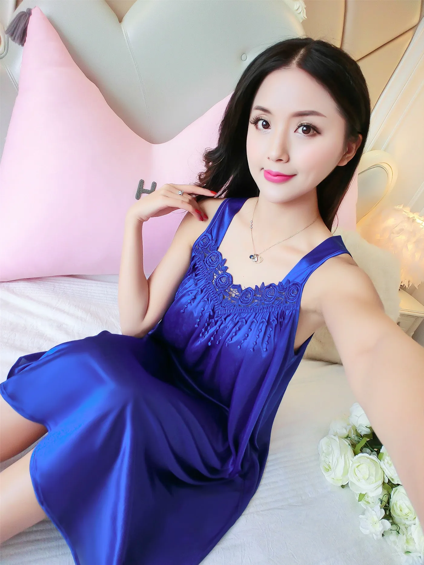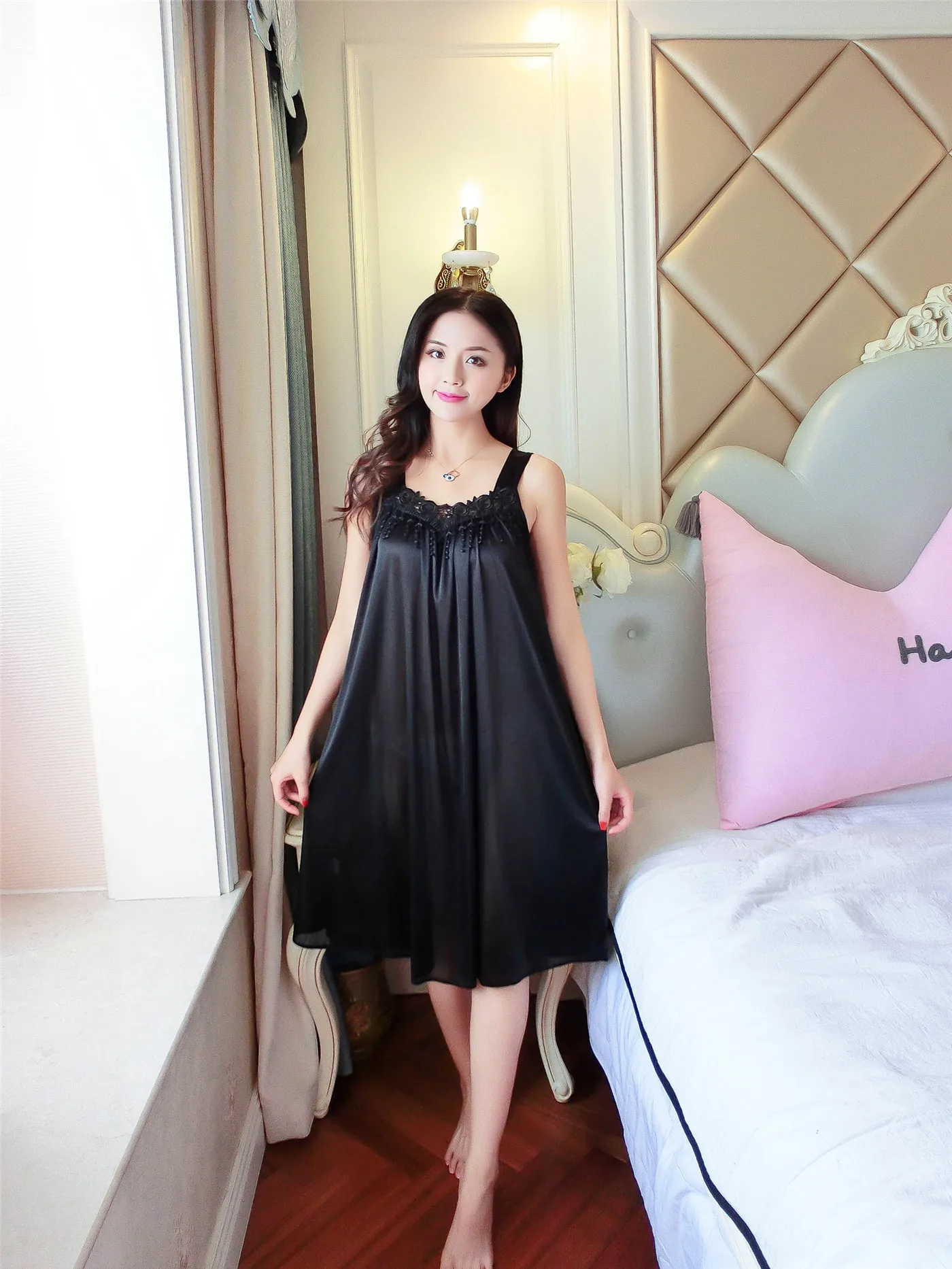 Large Size Ice Silk Halter Nightgown Female Summer Sexy Lace Nightgown Dress School Pajama Solid Colour Easy to Clean Home Wear