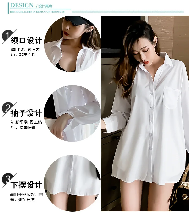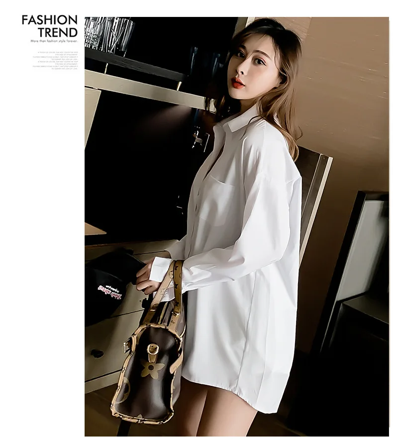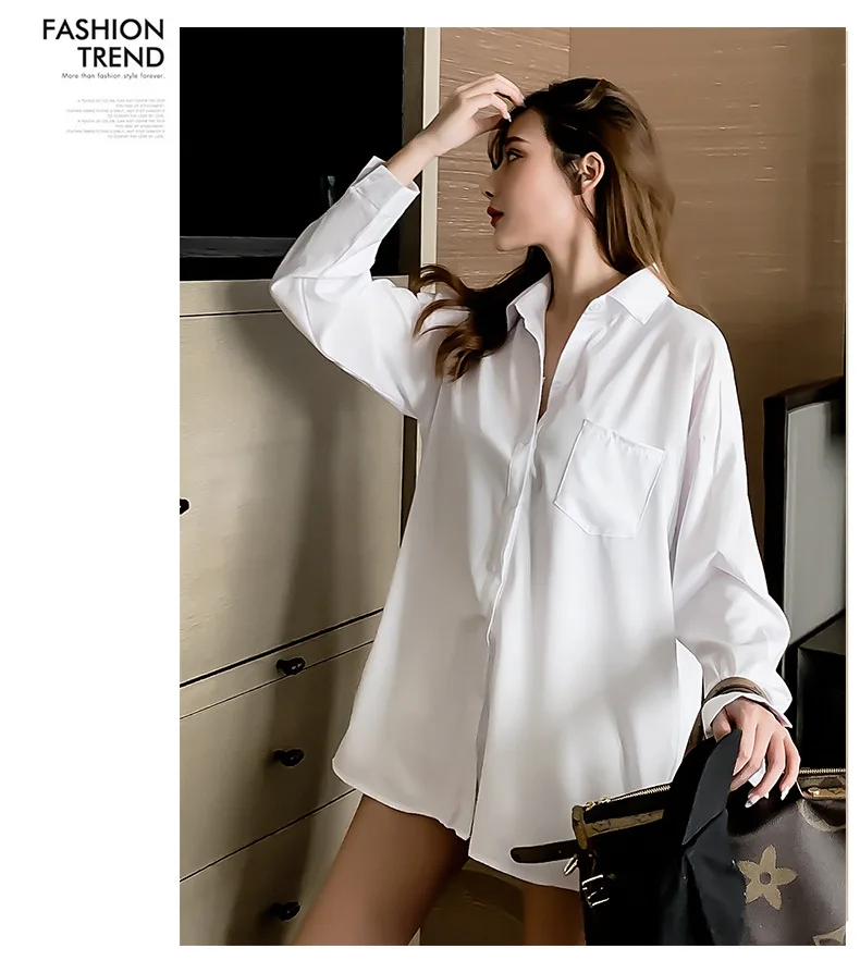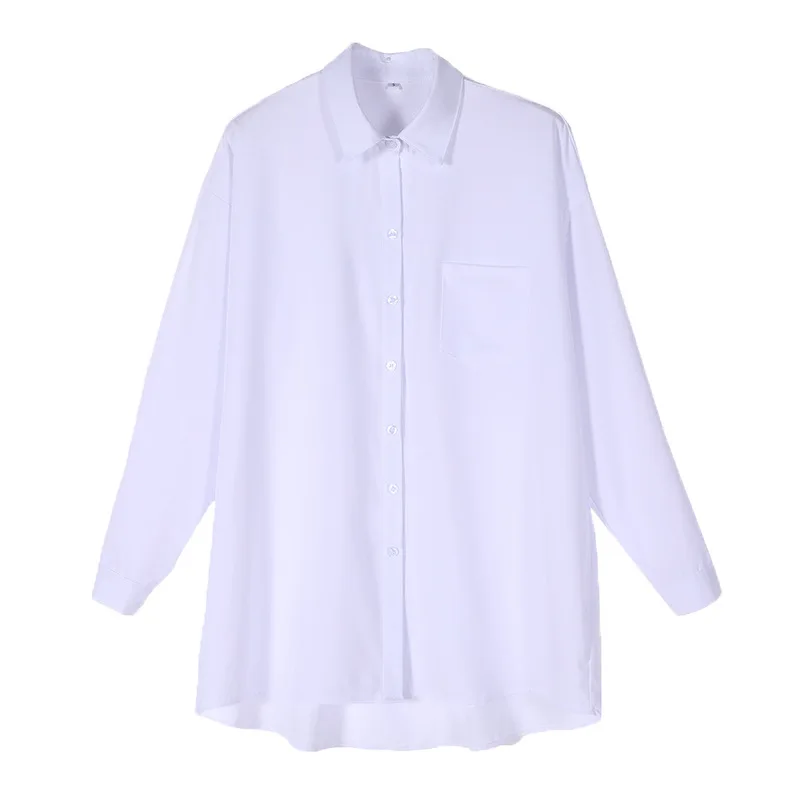 Long Sleeve White Blouse Shirt Pocket Women Loose Chiffion Spring Autumn Students Lazy Style Casual Top Mid Length Blouses 2023