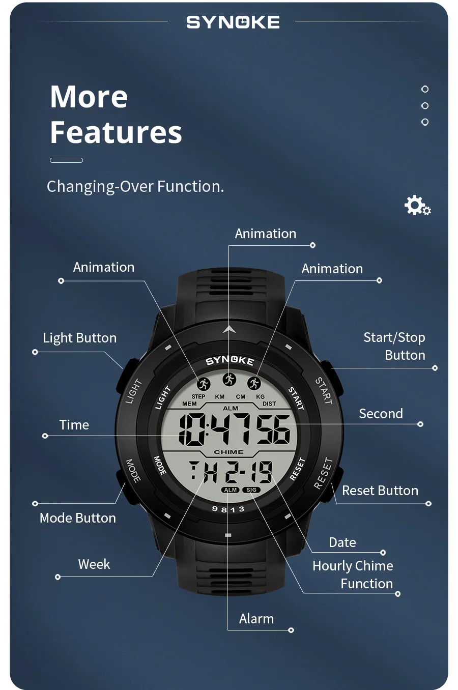Feature: Back Light,Shock Resistant,Complete Calendar,Alarm,Week Display