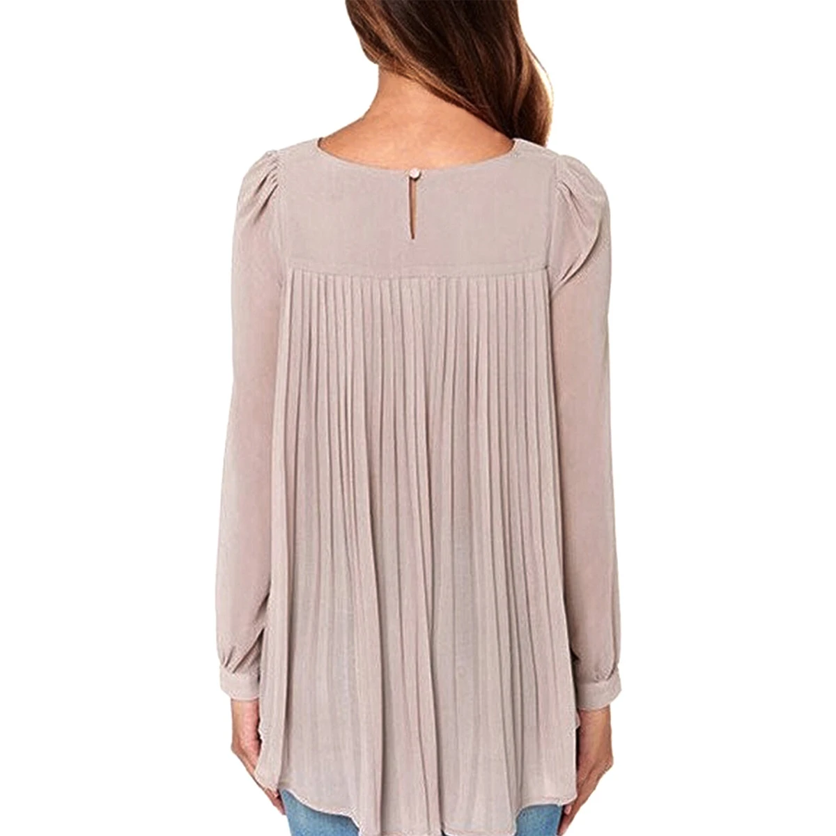 New Women Sexy Casual Loose Chiffon Blouse Long Sleeve Solid Crimp Shirts
