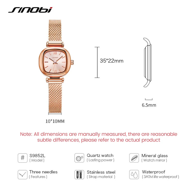 Sinobi Fashion Womens Square Golden Watch Elegant Ladies Quartz Wristwatches Luxury Casual Female Gifts Clock Relogio Feminino
