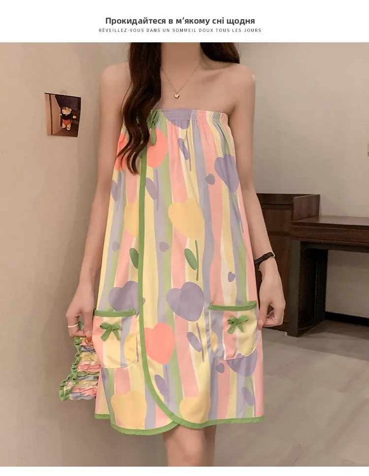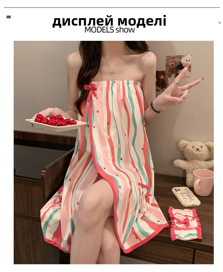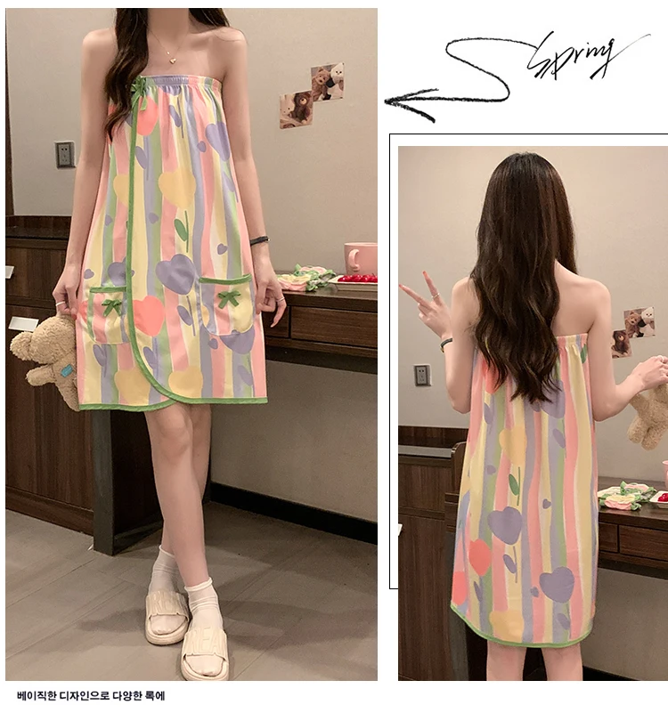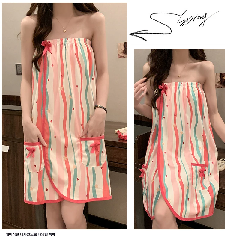 Summer Cotton Bath Towel Thin Faion Line Pattern Simple Magic Sti Women's Bath Skirt Tube Top ort Skirt Bath Robe