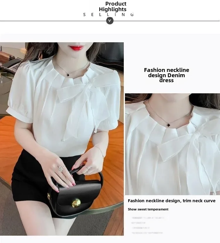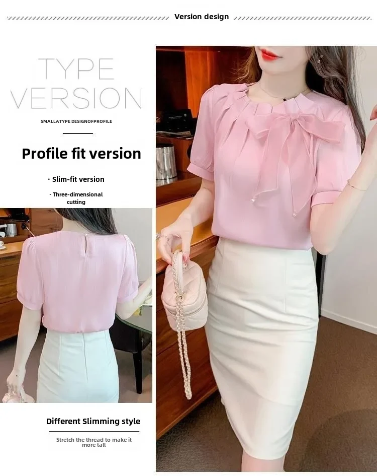 • Summer Chic Design :This Women's Chiffon Shirt features a summer-ready design, with its Korean style round neck and ruched bow detail, making it a stylish addition to your wardrobe.