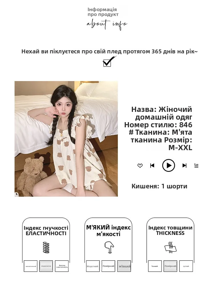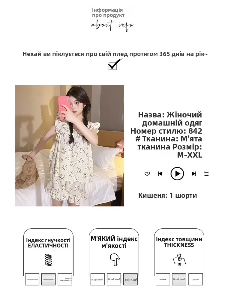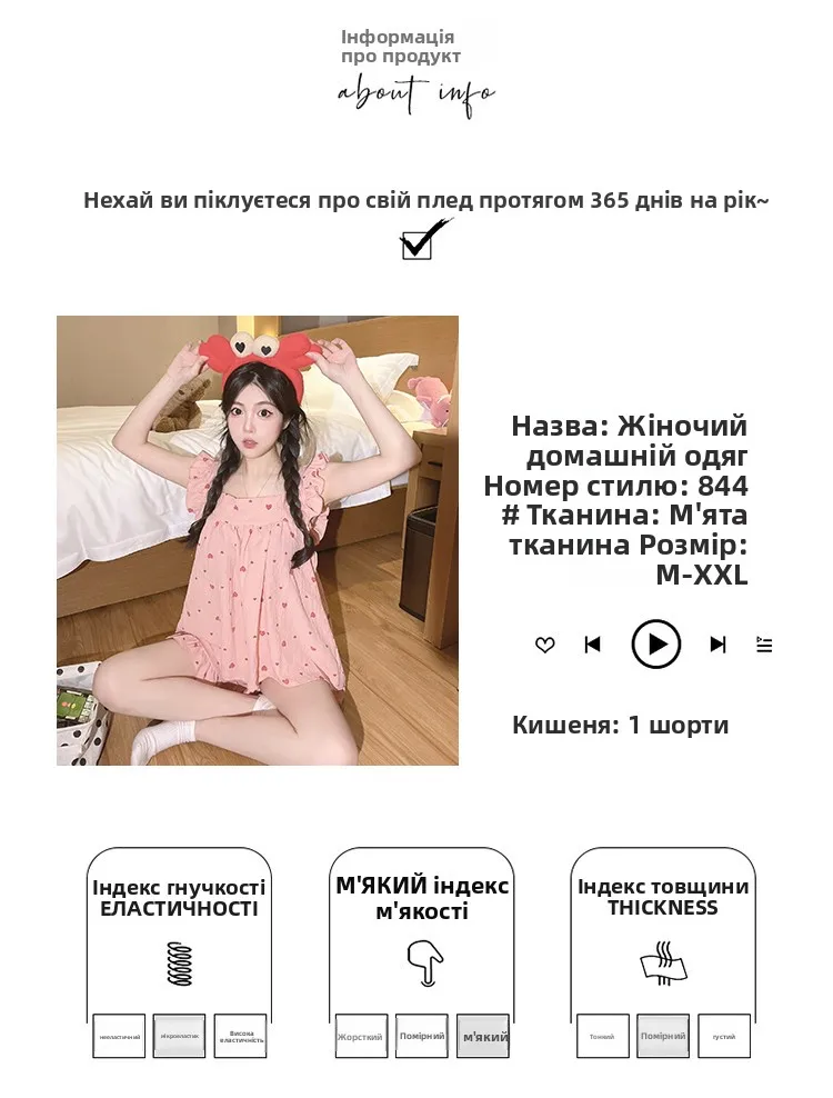 With its short pants and elastic waistband, this pajama set offers convenience and ease of movement, ideal for home use.