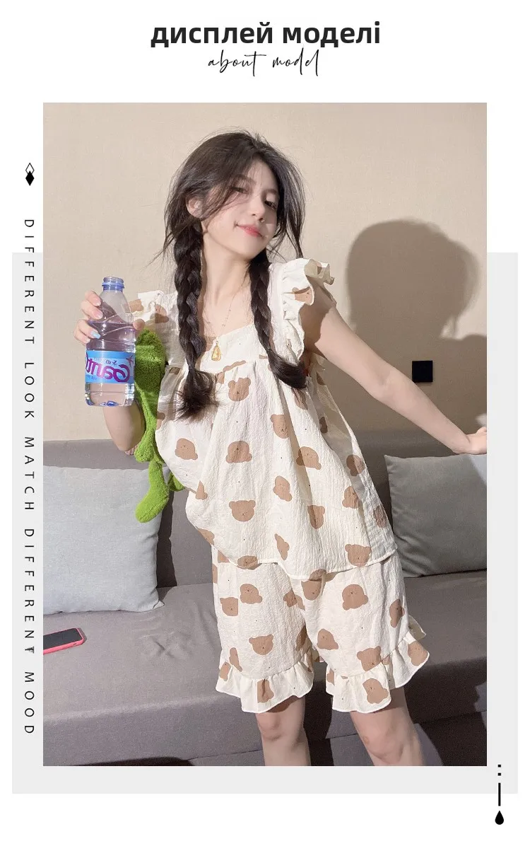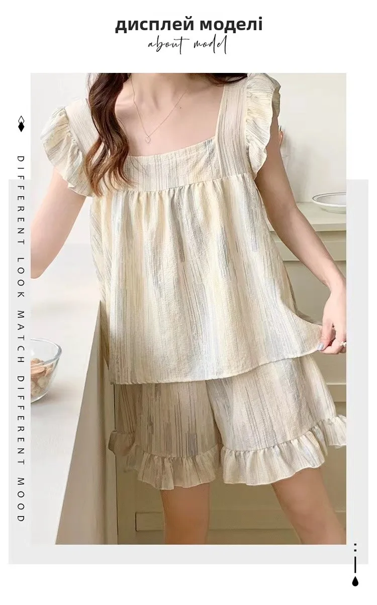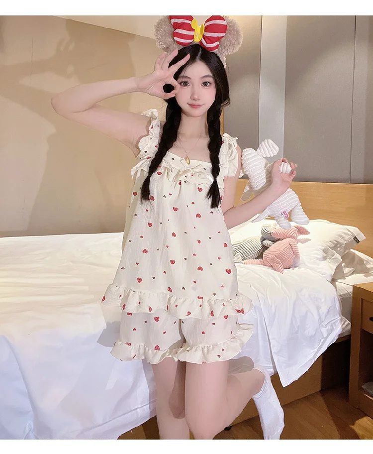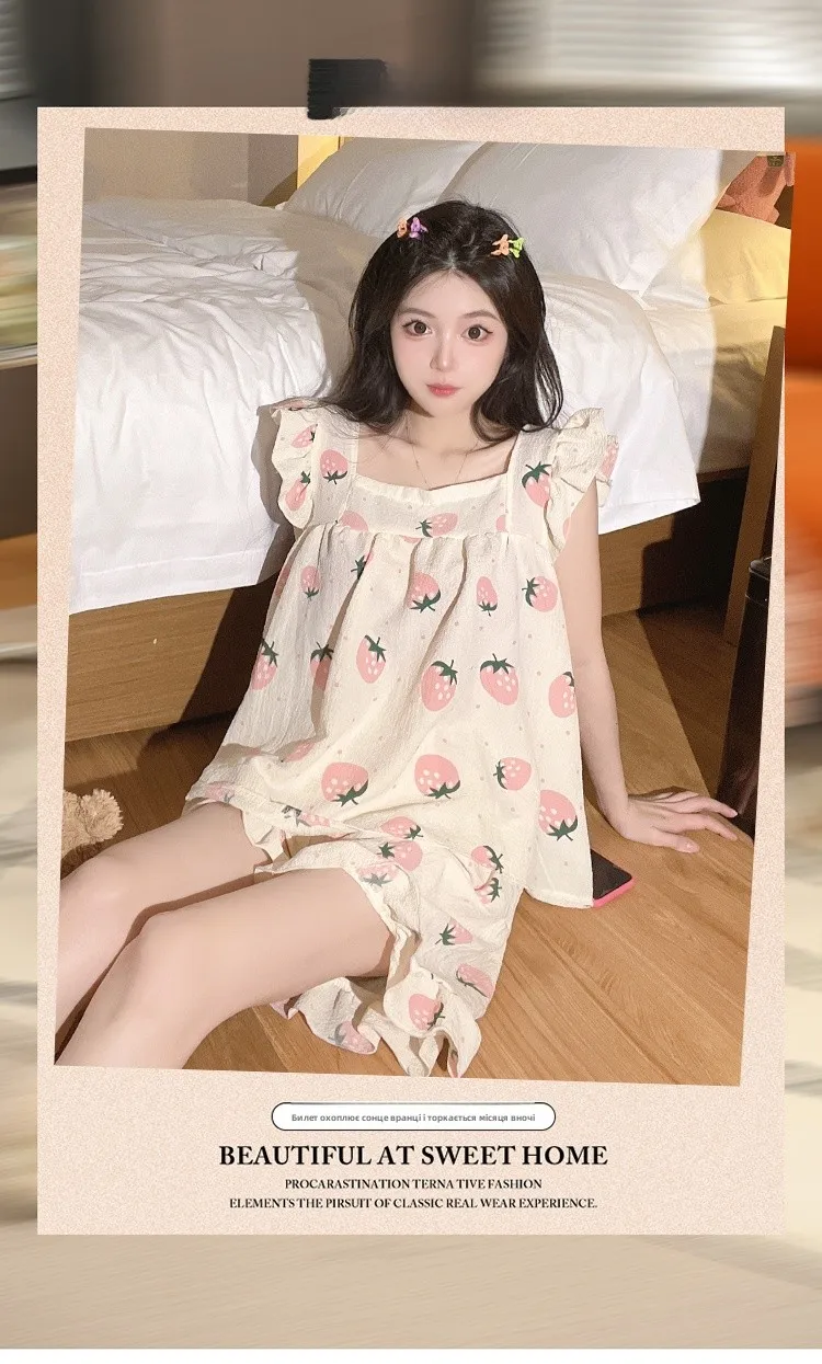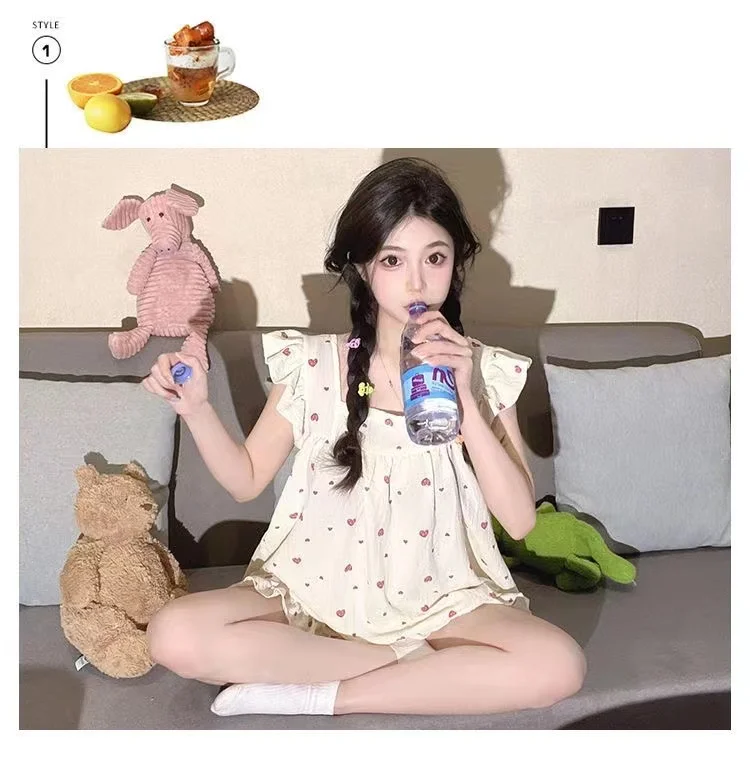This summer pajama set features a fresh and stylish Japanese design, perfect for those who appreciate simplicity and elegance.