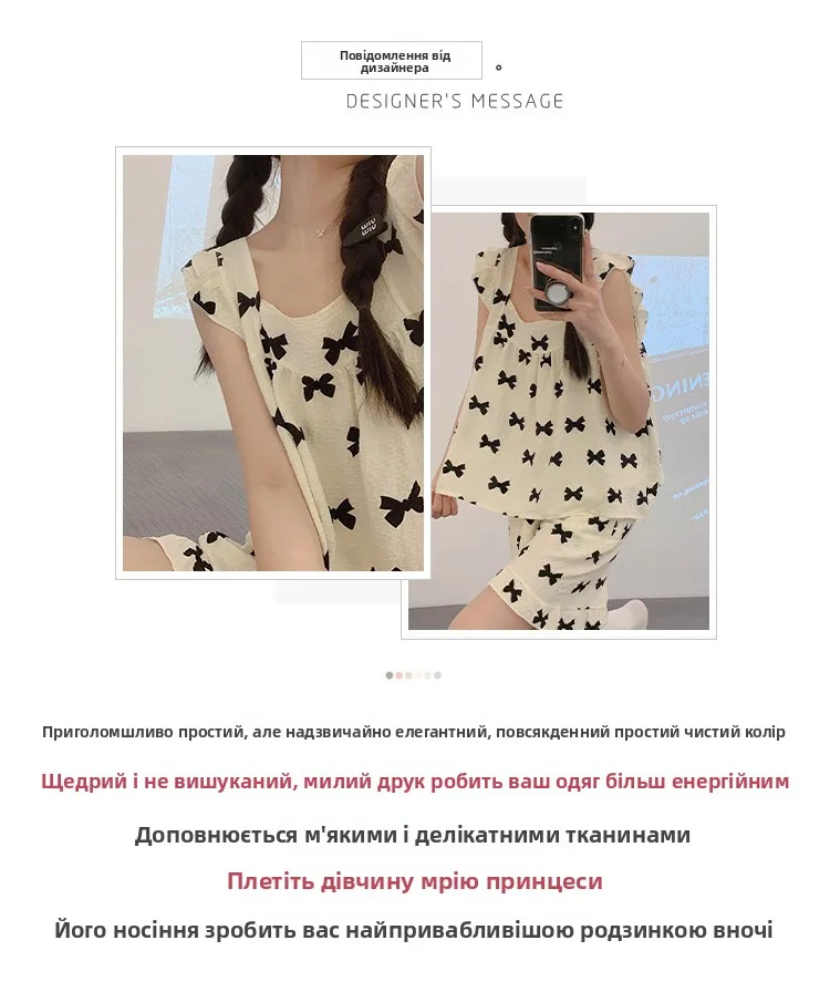 The pajama set also includes a charming butterfly knot design, adding a touch of femininity and charm to your bedtime look.