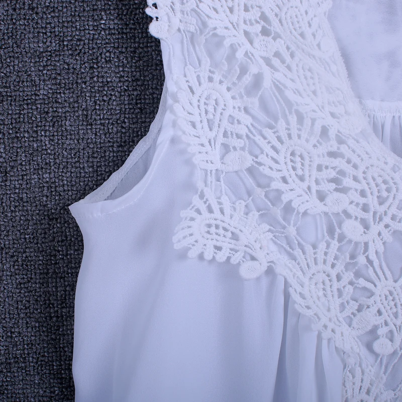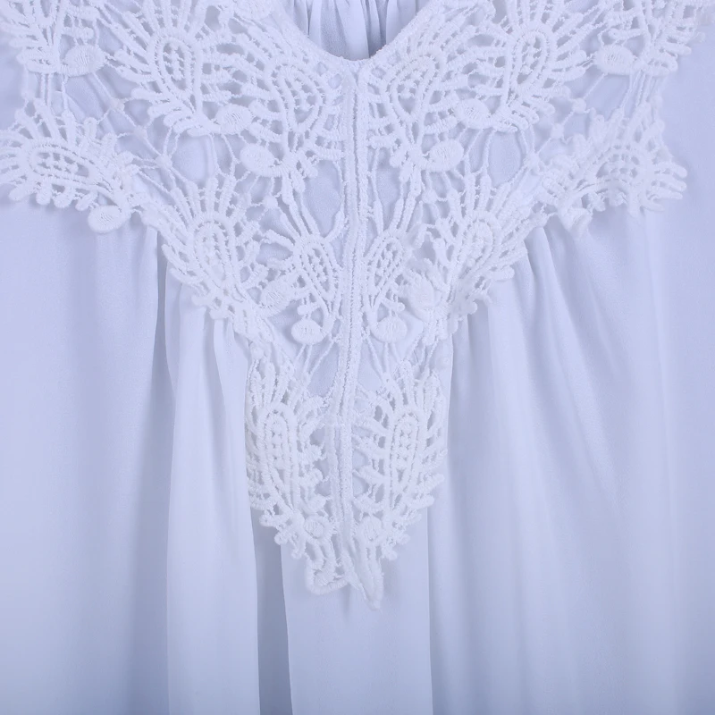 Summer tops for women Fashion Lace Chiffon blouse V-Neck Loose Casual Chiffon Shirt
