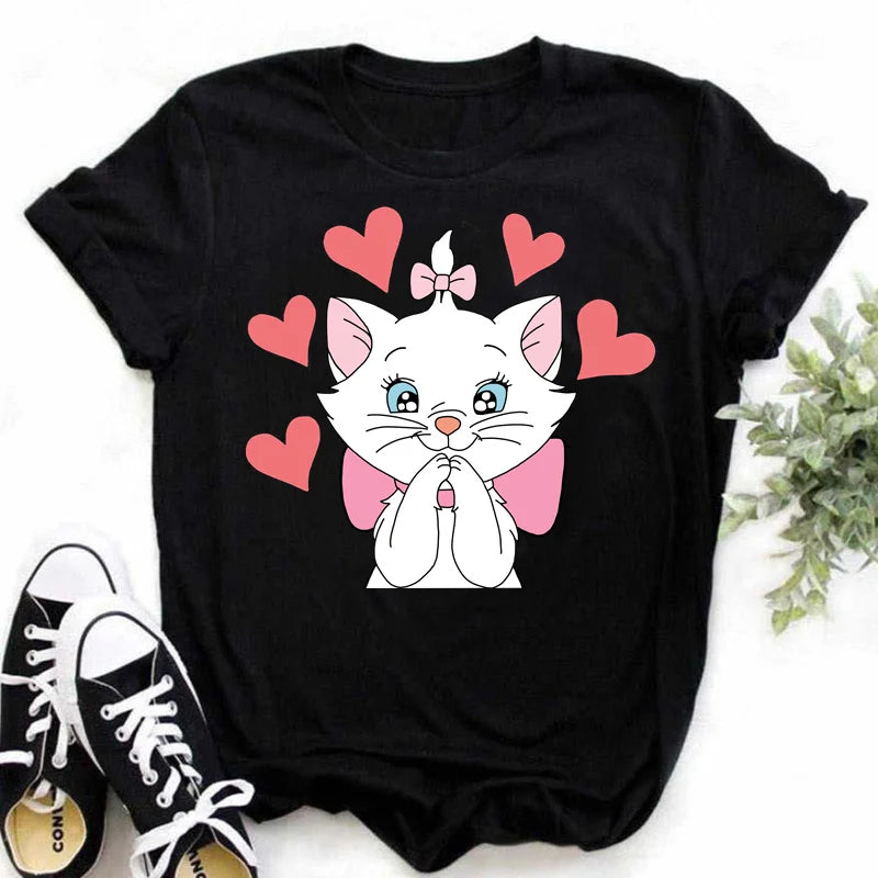 The Aristocats Marie Cat Kawaii Cute Graphic Print Cotton T-shirt 2024 Women's Summer Top Y2K Cute Style Couple Short Sleeve Top