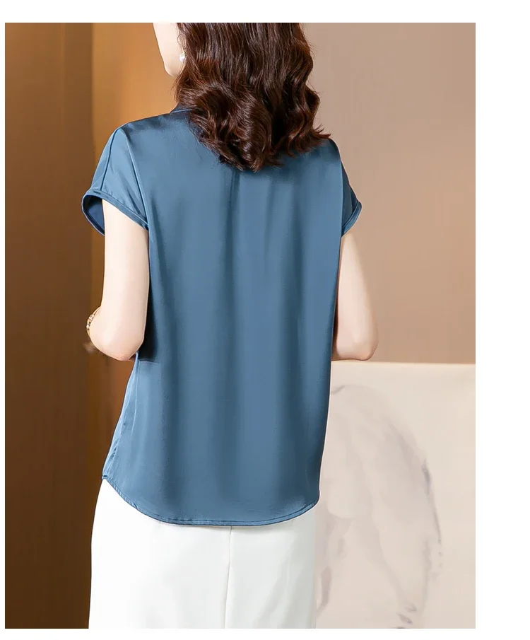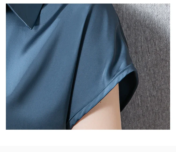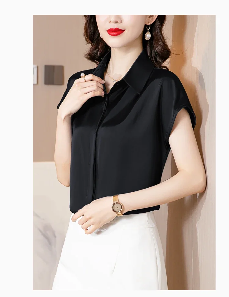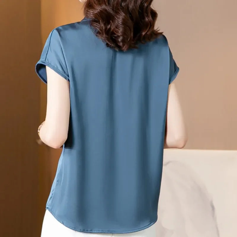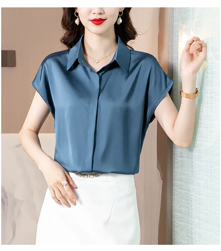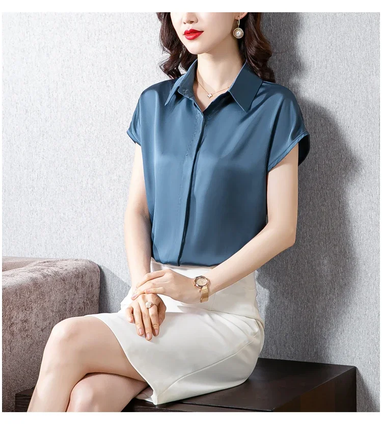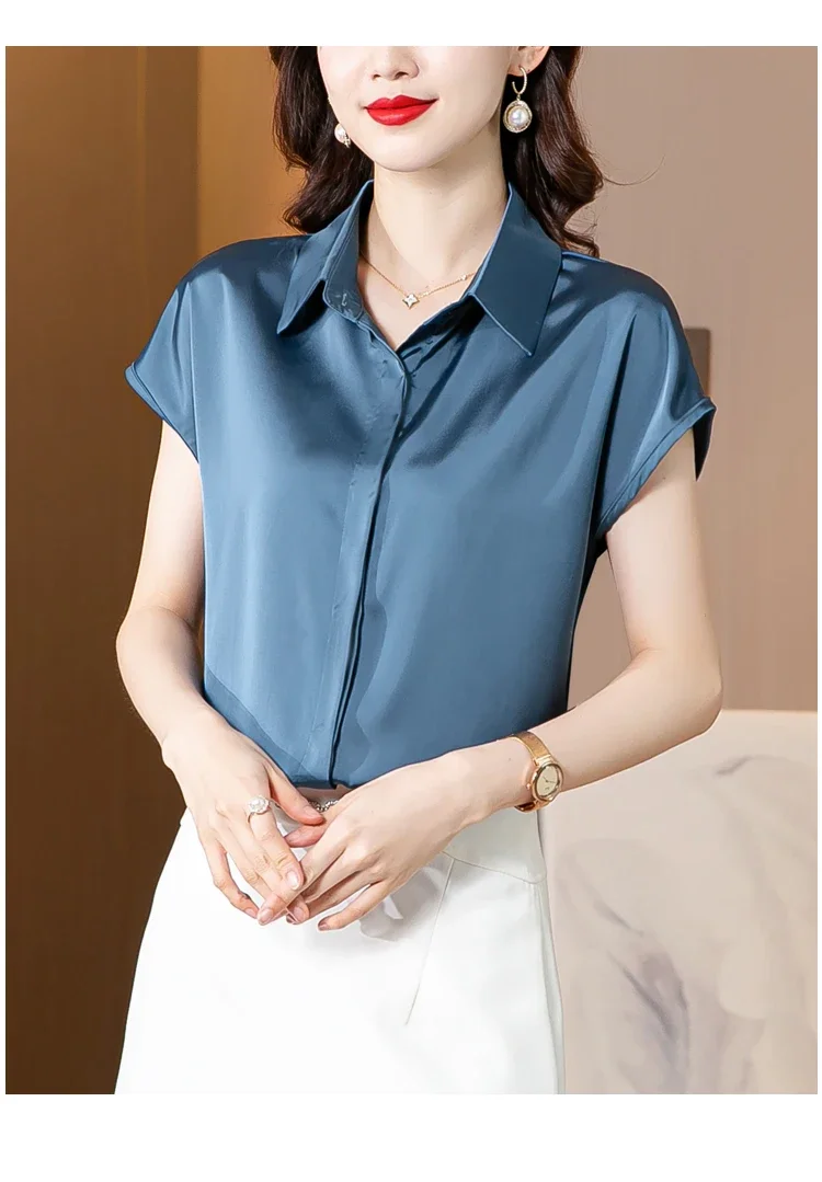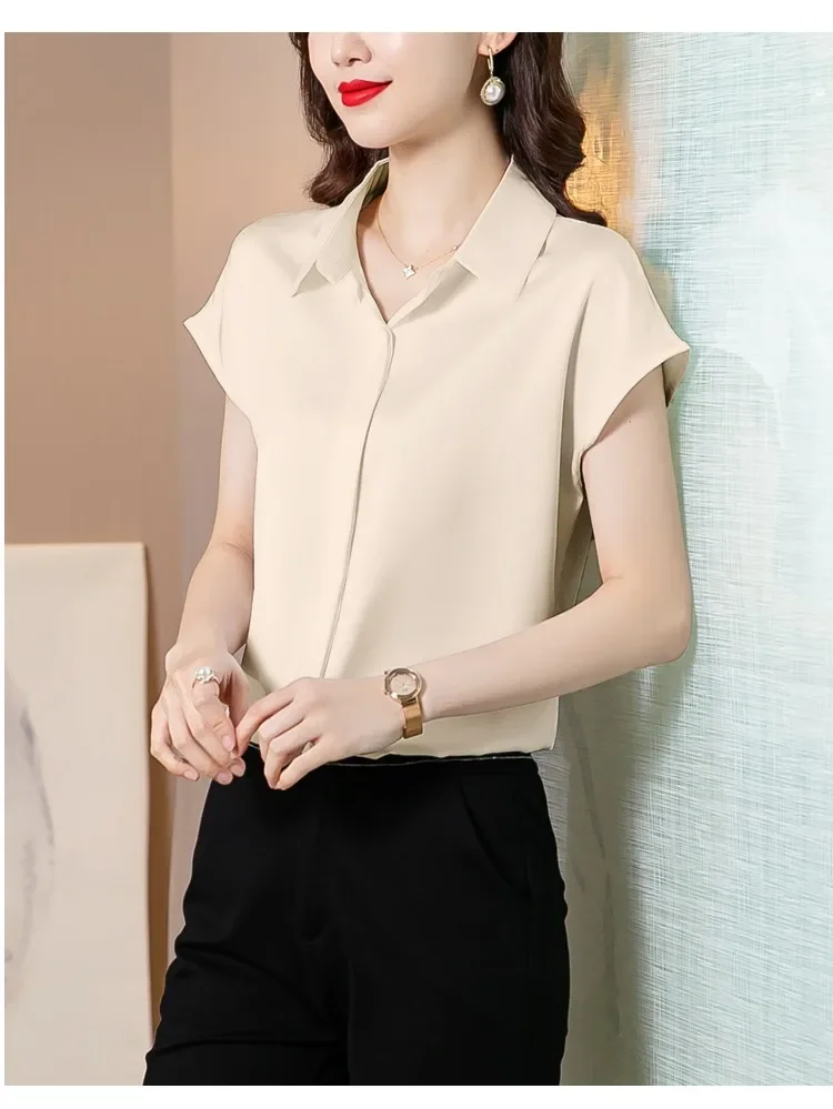Vintage Blouse Women 2025 New Summer Satin Shirt Silk Elegant Womens Tops Short Sleeve Blouses and Shirts Fashion Women Clothing