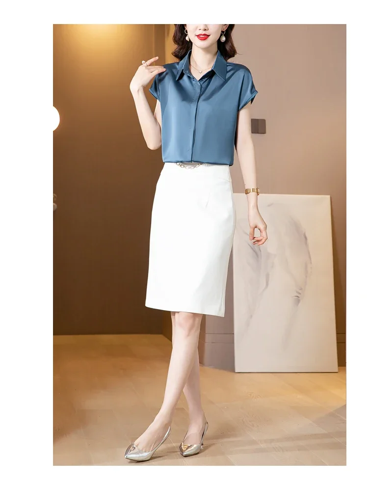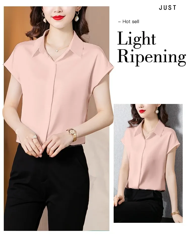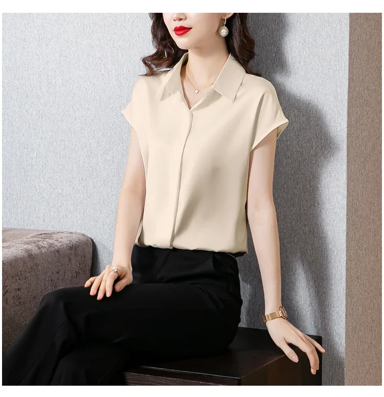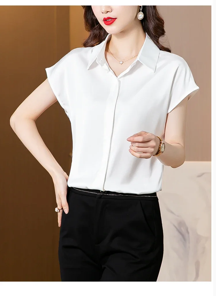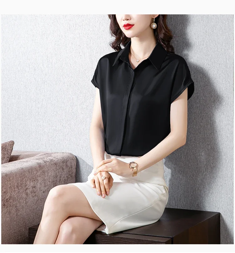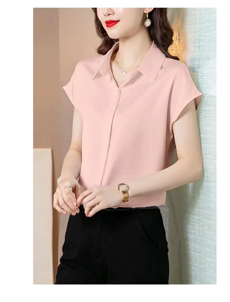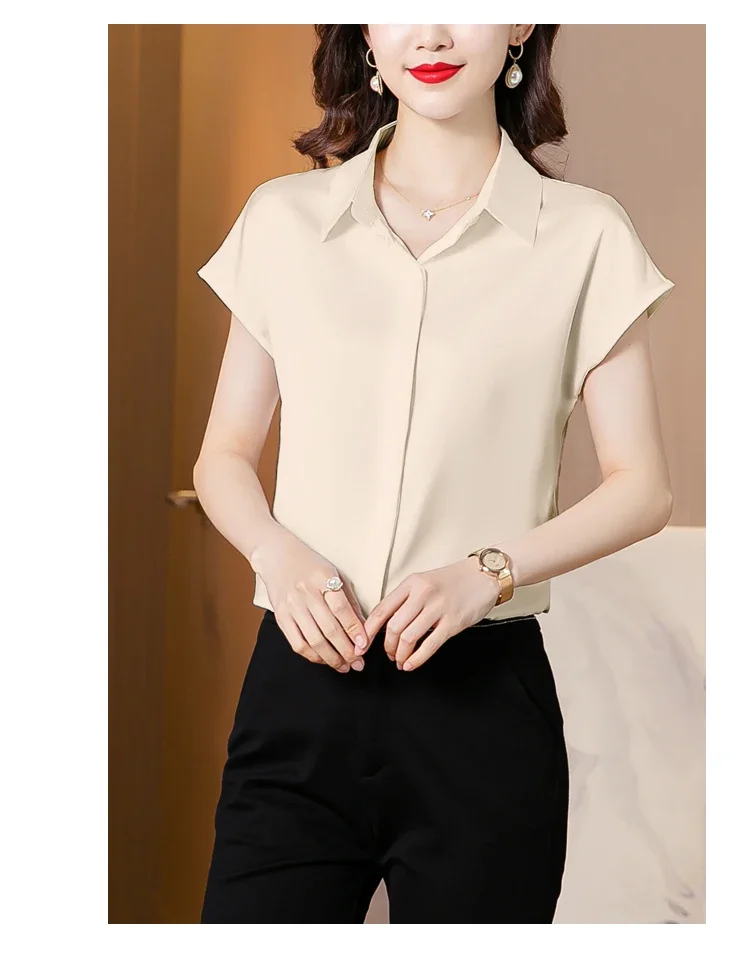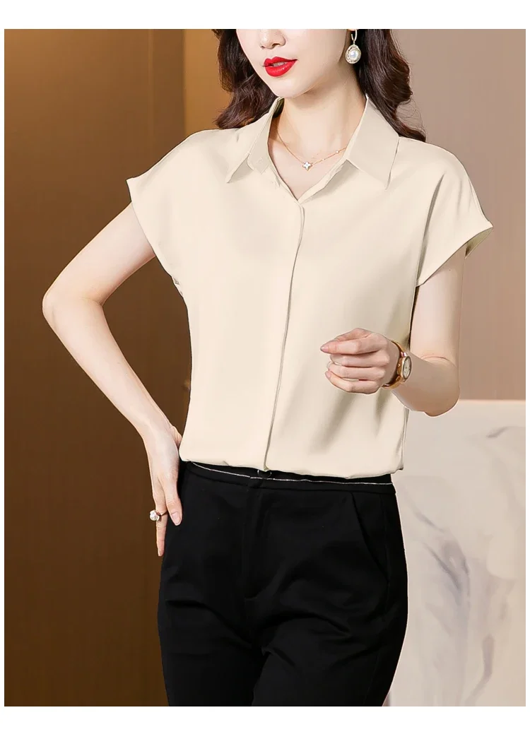 Vintage Blouse Women 2025 New Summer Satin Shirt Silk Elegant Womens Tops Short Sleeve Blouses and Shirts Fashion Women Clothing