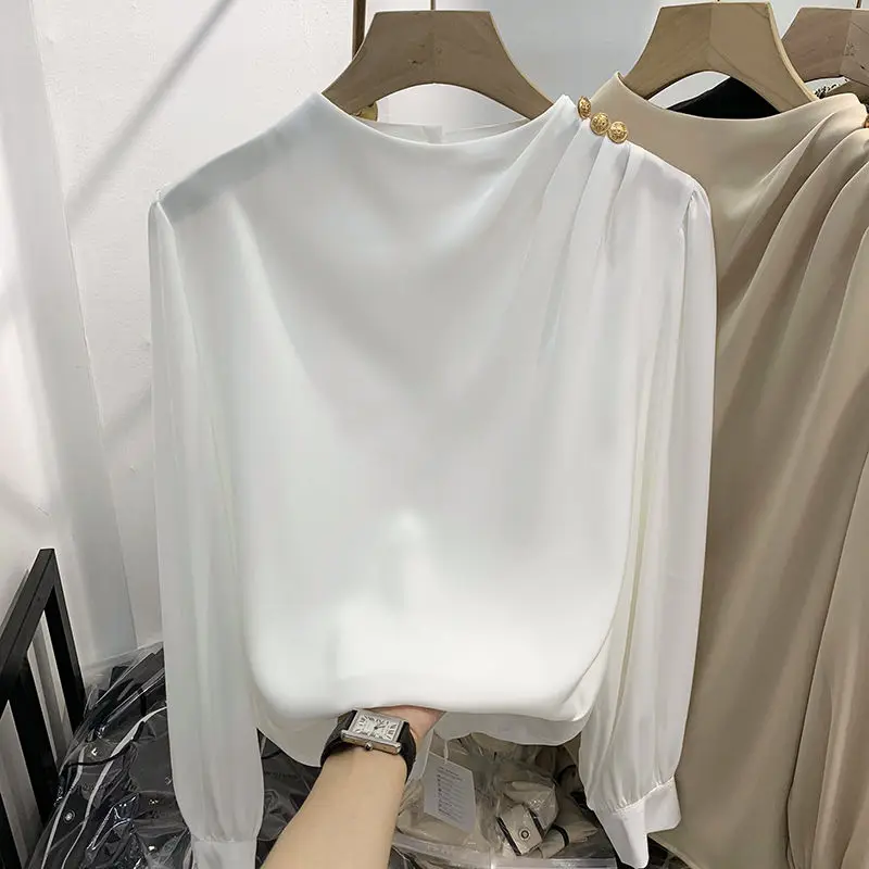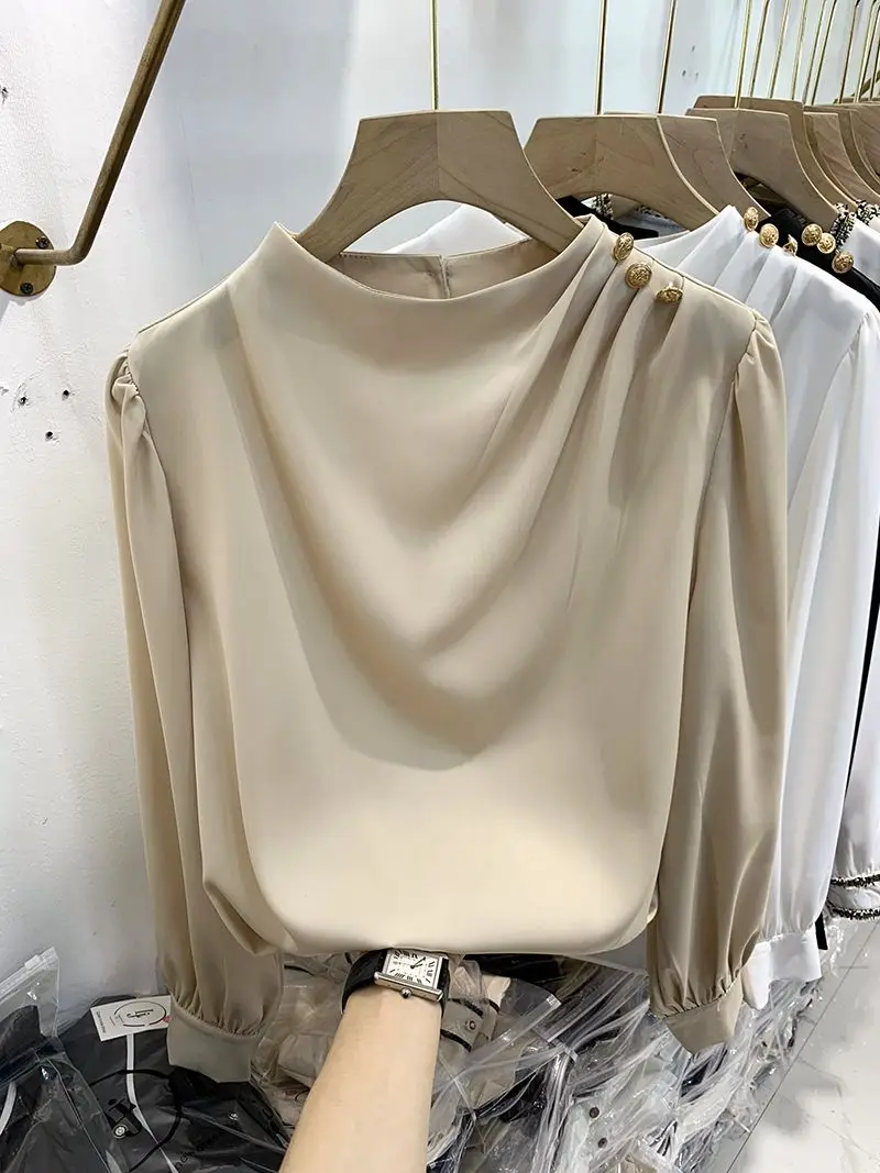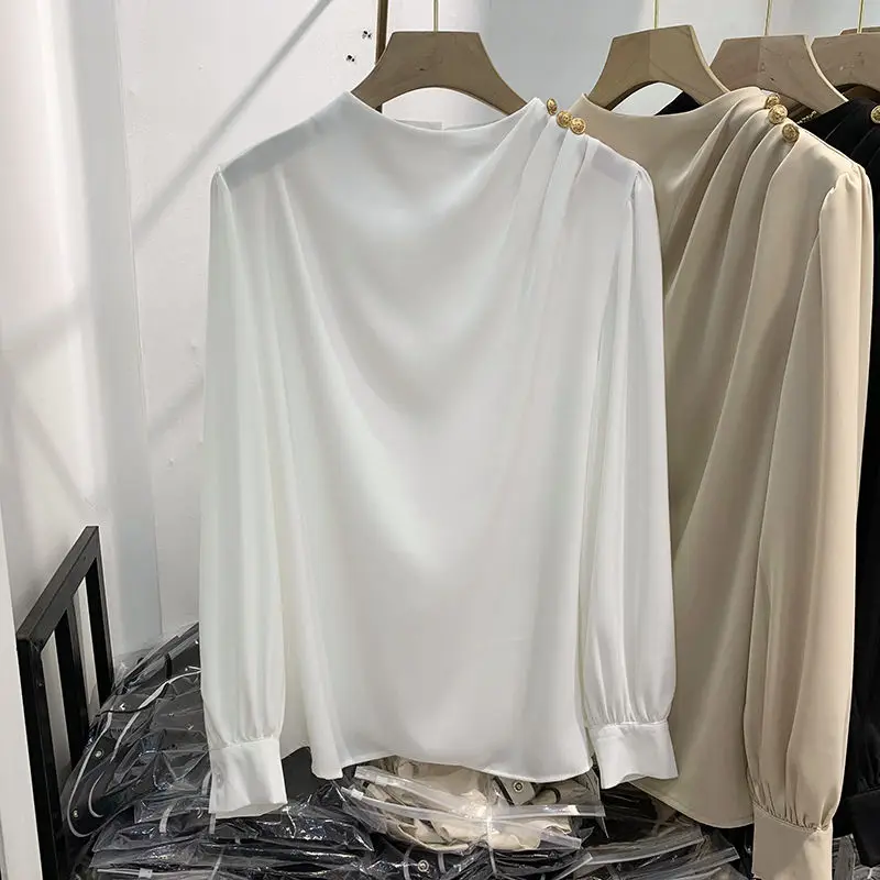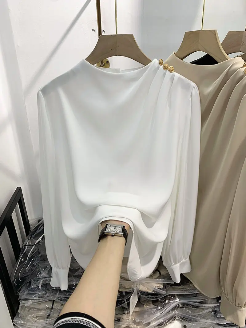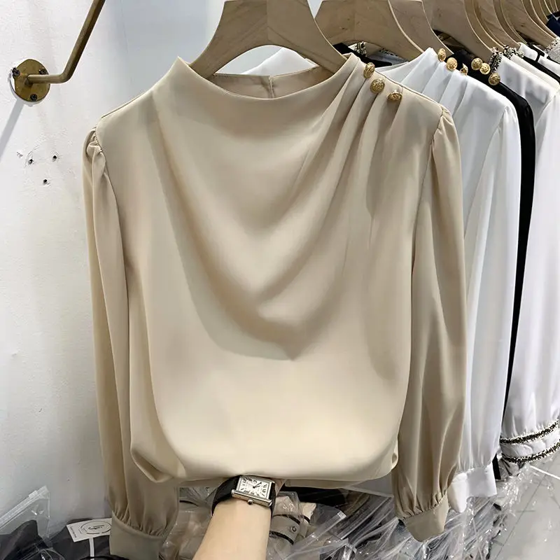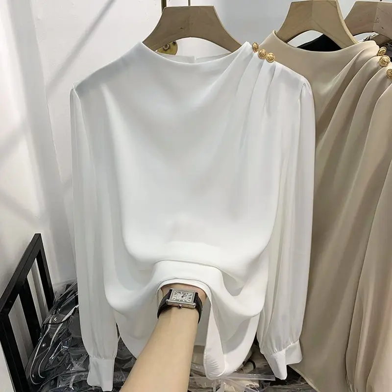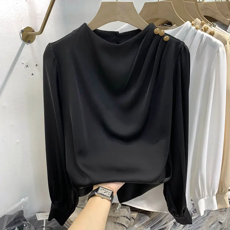 Women Clothing Thin Spring New Long Sleeve Button Patchwork Elegant Blouse Solid Loose Vintage Shirt Tops Fashion Temperament