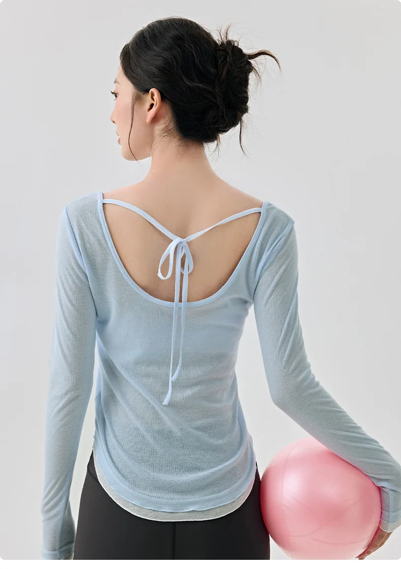 Women fitness gym Yoga Tops Lightweight Breathable Sexy Backless Long-sleeved sports tops Cover-up T-shirt Women's clothing