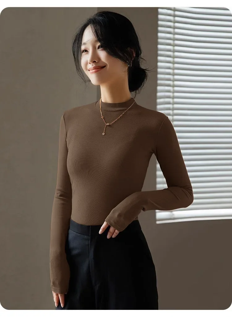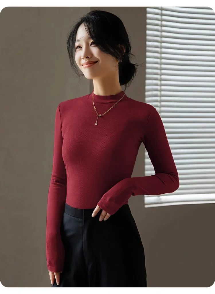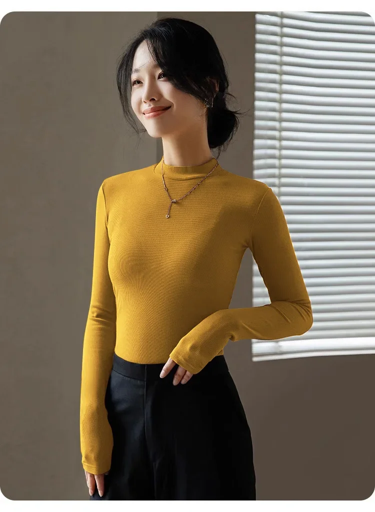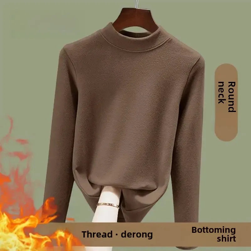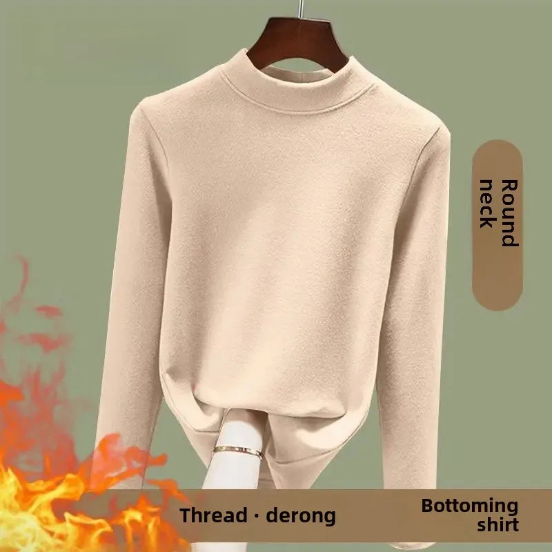 Women's Fleece Lined Long Sleeve Crew Neck Base Shirt Thermal Top Pure Color Spring Autumn Fashionable T-Shirt Polyester Fiber