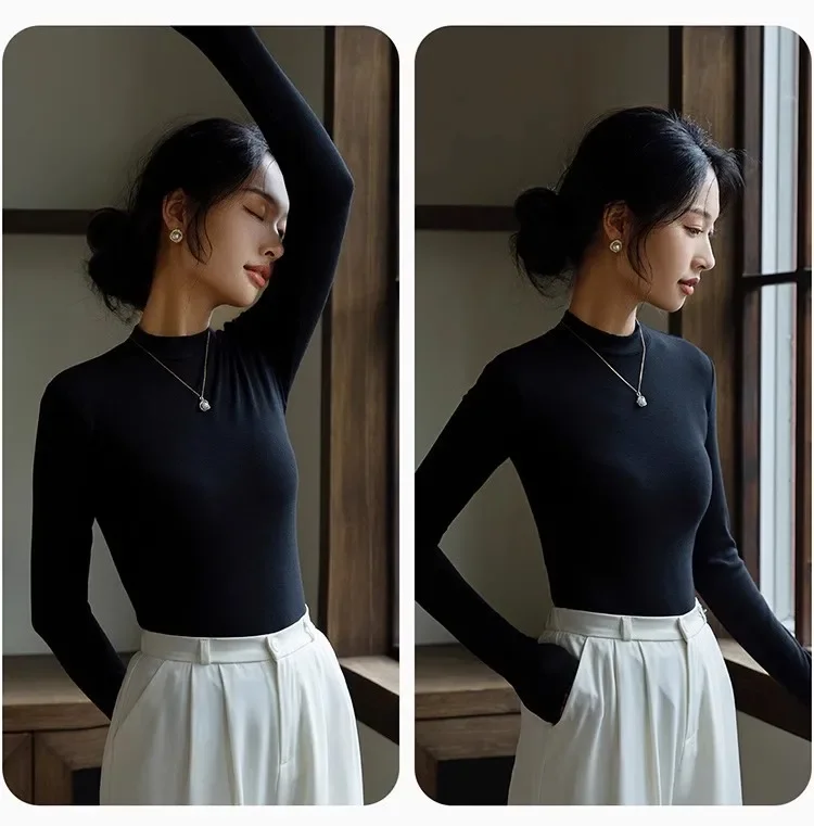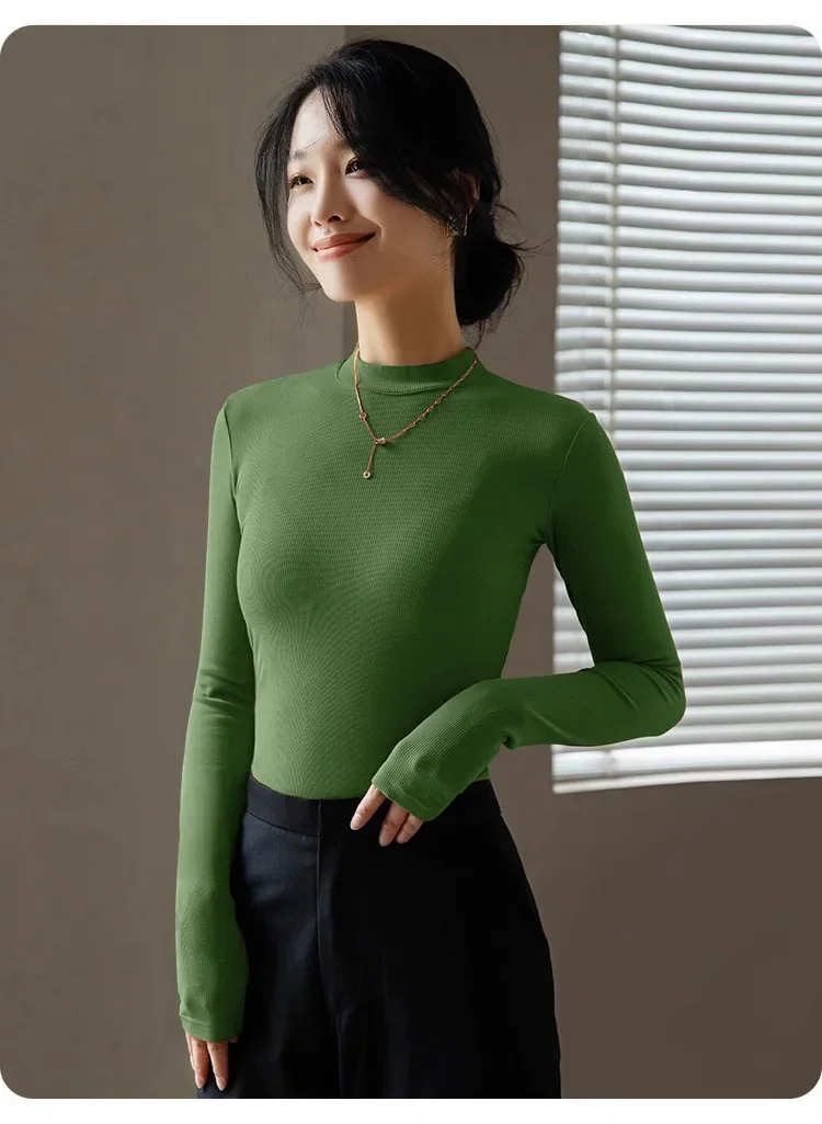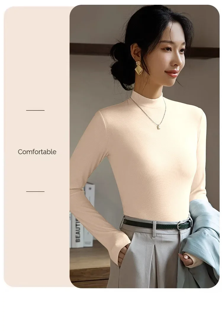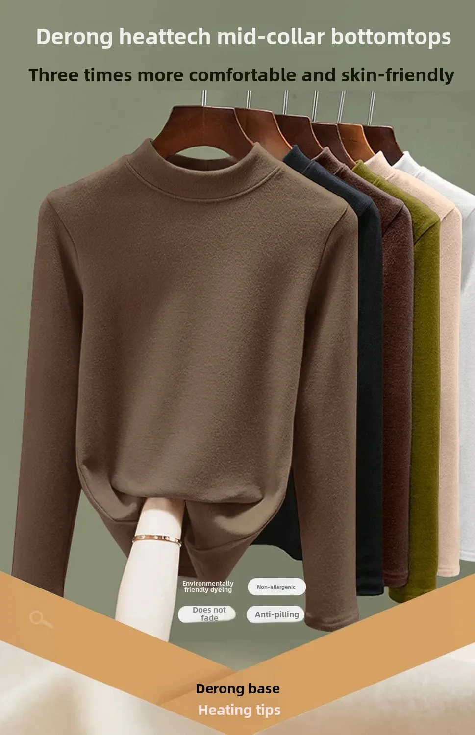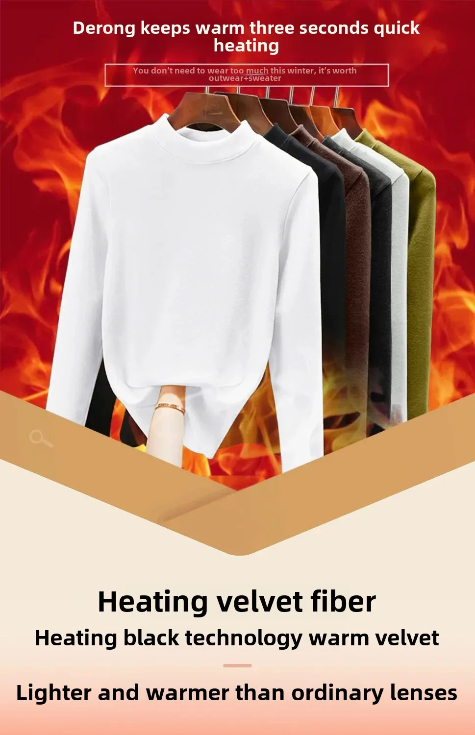 Women's Fleece Lined Long Sleeve Crew Neck Base Shirt Thermal Top Pure Color Spring Autumn Fashionable T-Shirt Polyester Fiber