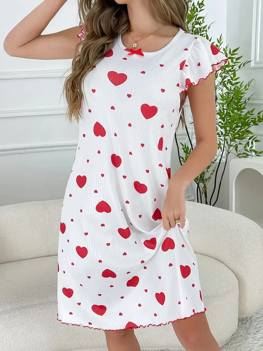 Women's Round-Neck All-Season Spring/Summer Dress Nightgown Casual Cute Heart Print Lazy Ins-Style Long Nightdress Summer Pajamas for Women